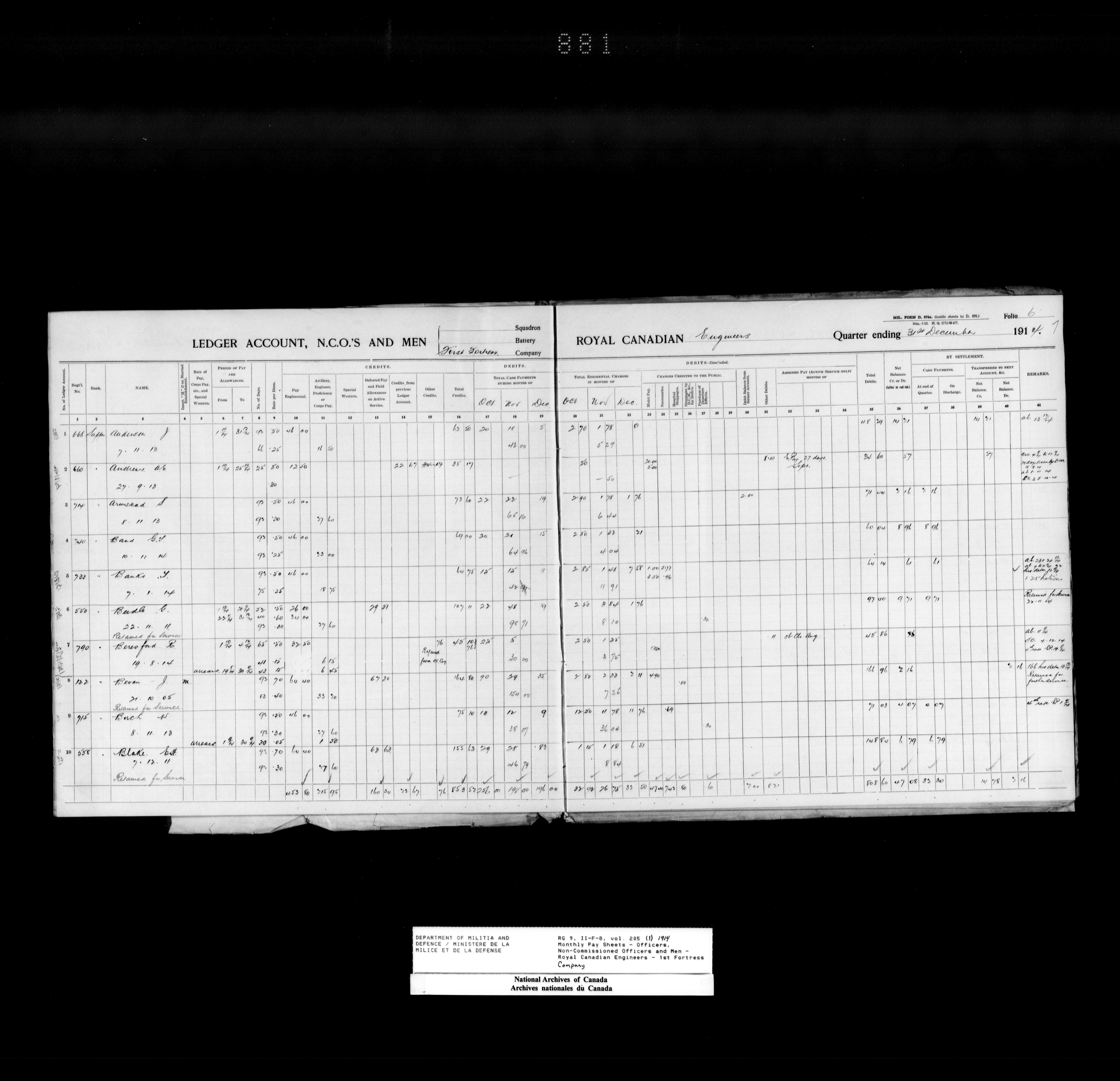 Nominal rolls and paylists for the Permanent Force (1871-1915) - 18403