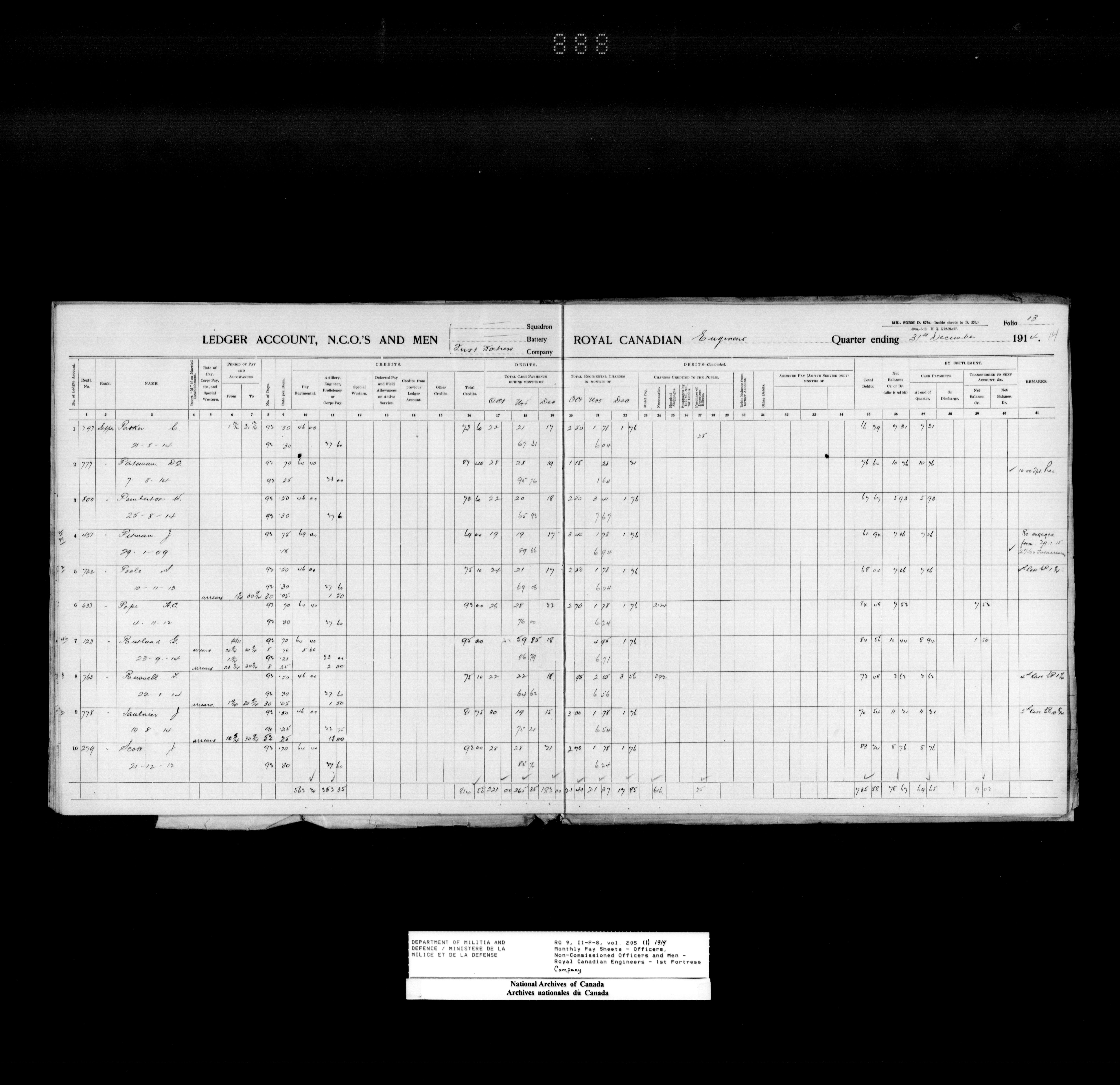 Nominal rolls and paylists for the Permanent Force (1871-1915) - 18403