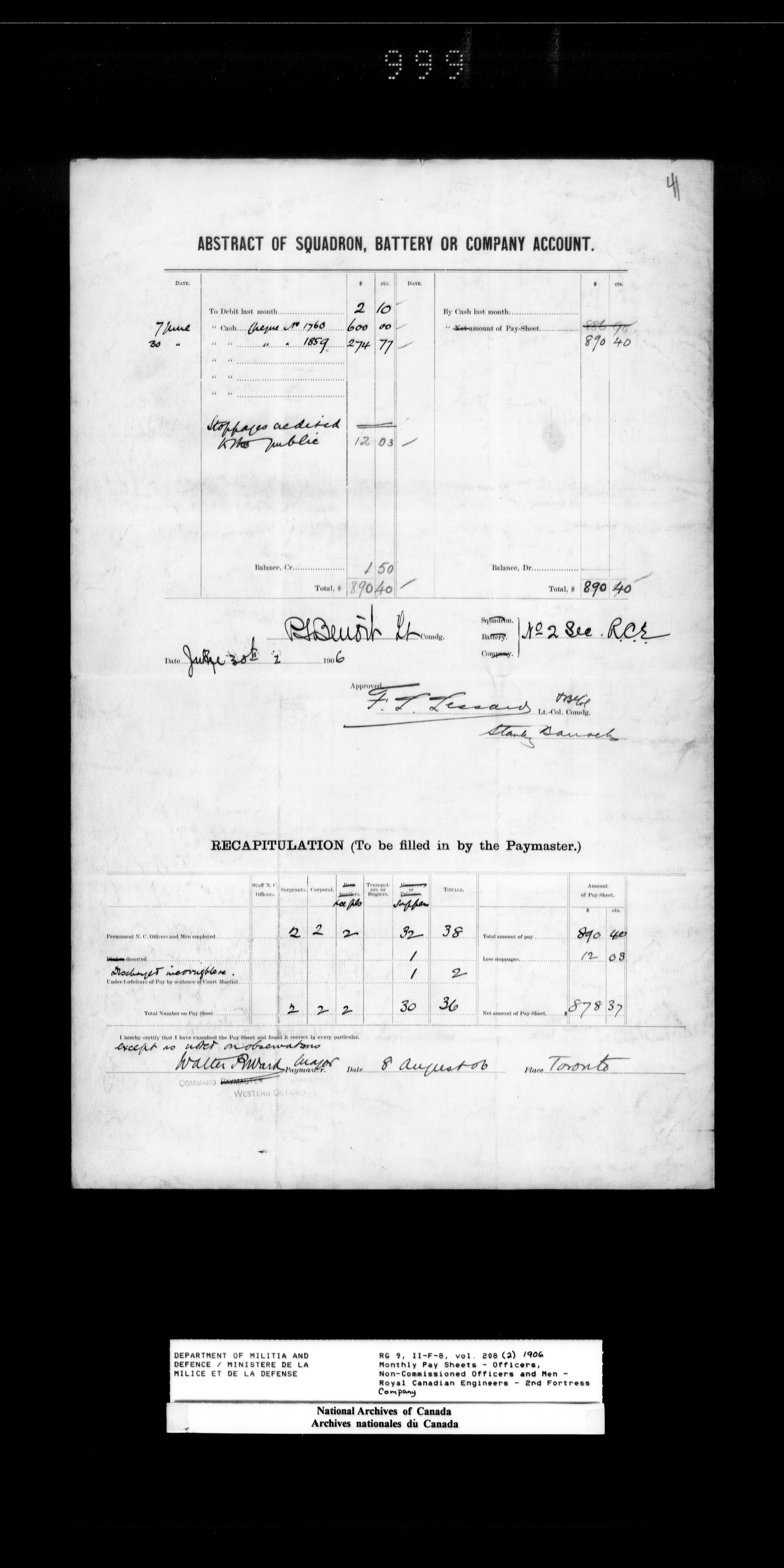Nominal rolls and paylists for the Permanent Force (1871-1915) - 18404