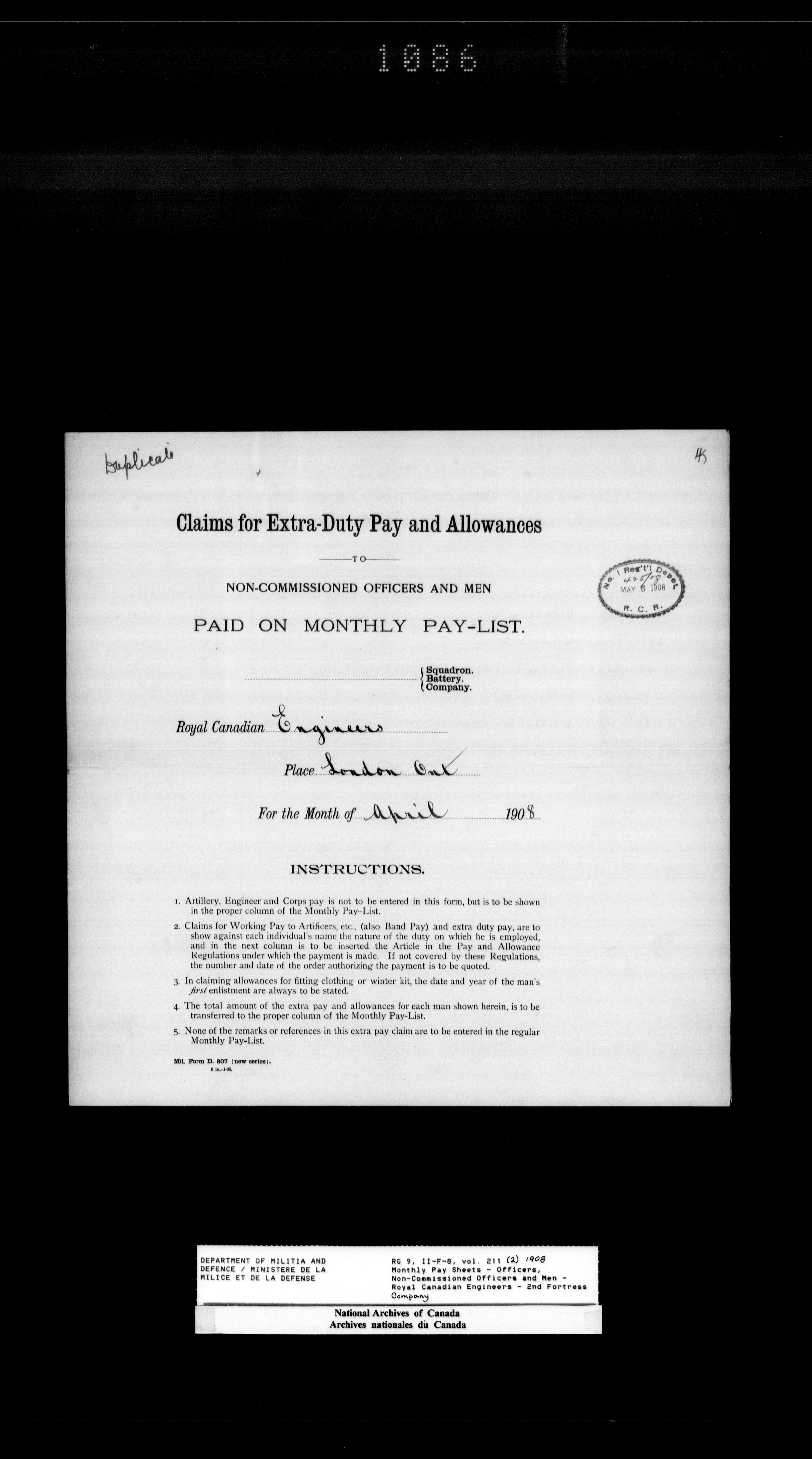 Nominal rolls and paylists for the Permanent Force (1871-1915) - 18405