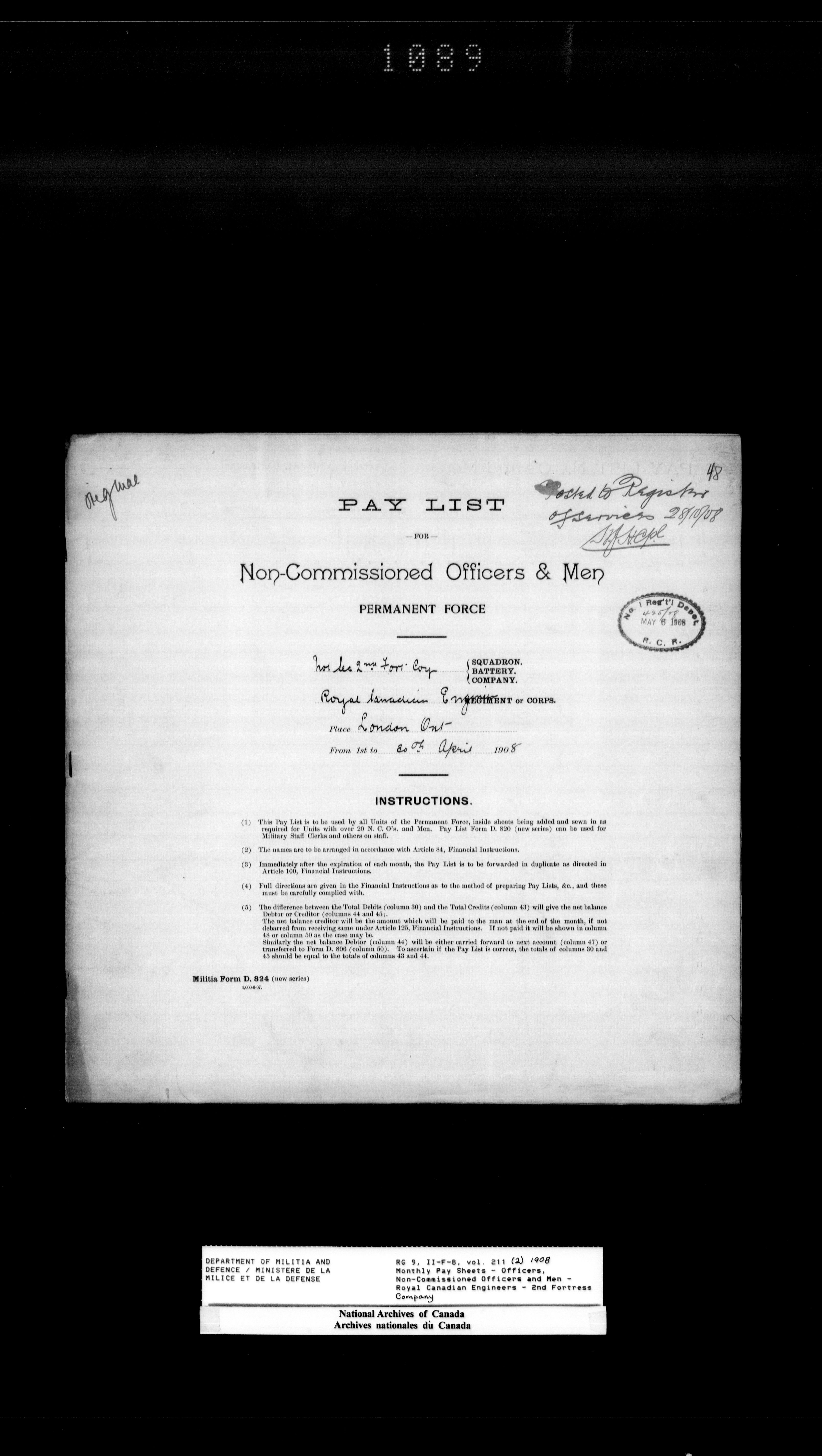 Nominal rolls and paylists for the Permanent Force (1871-1915) - 18405