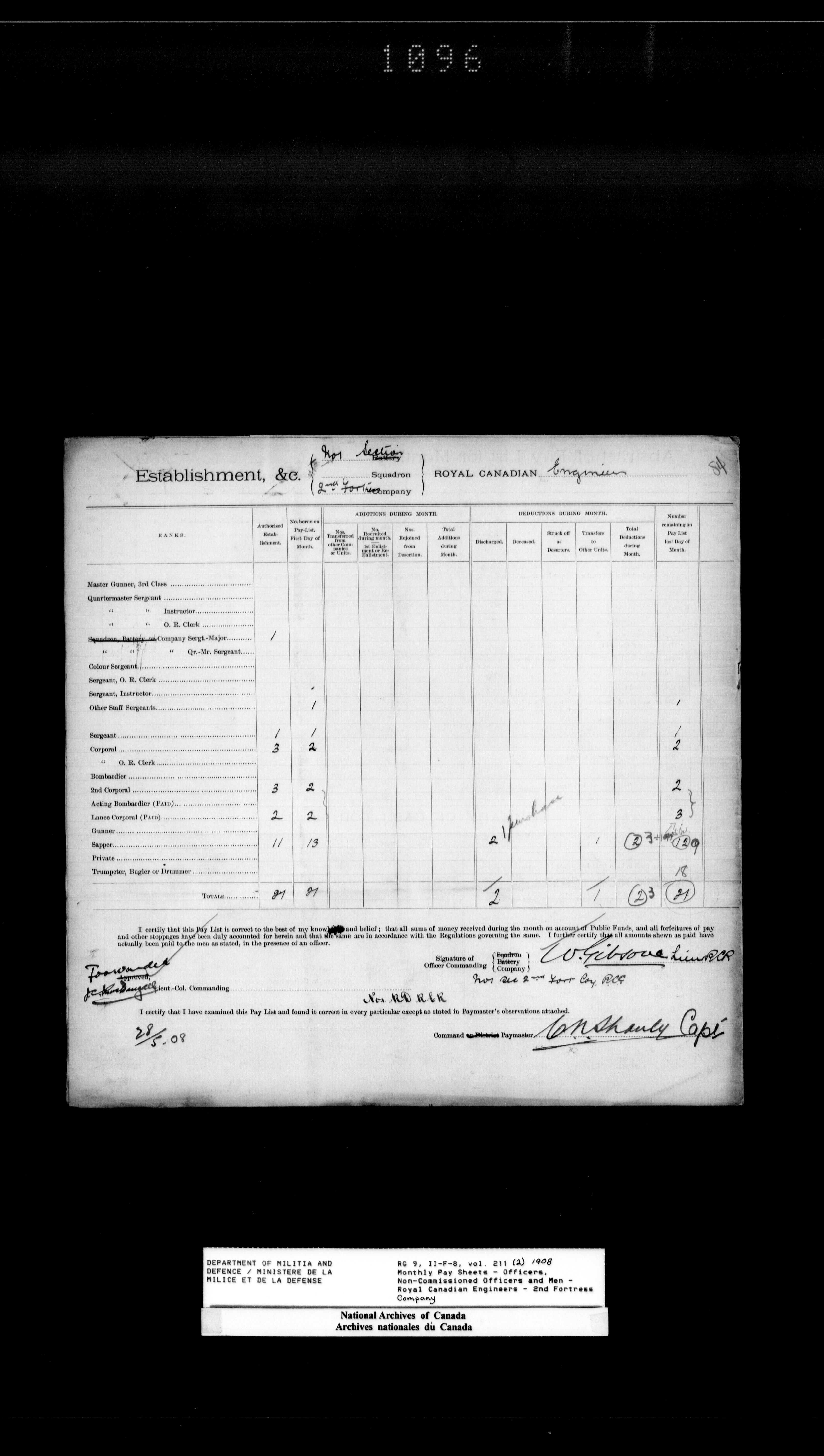 Nominal rolls and paylists for the Permanent Force (1871-1915) - 18405