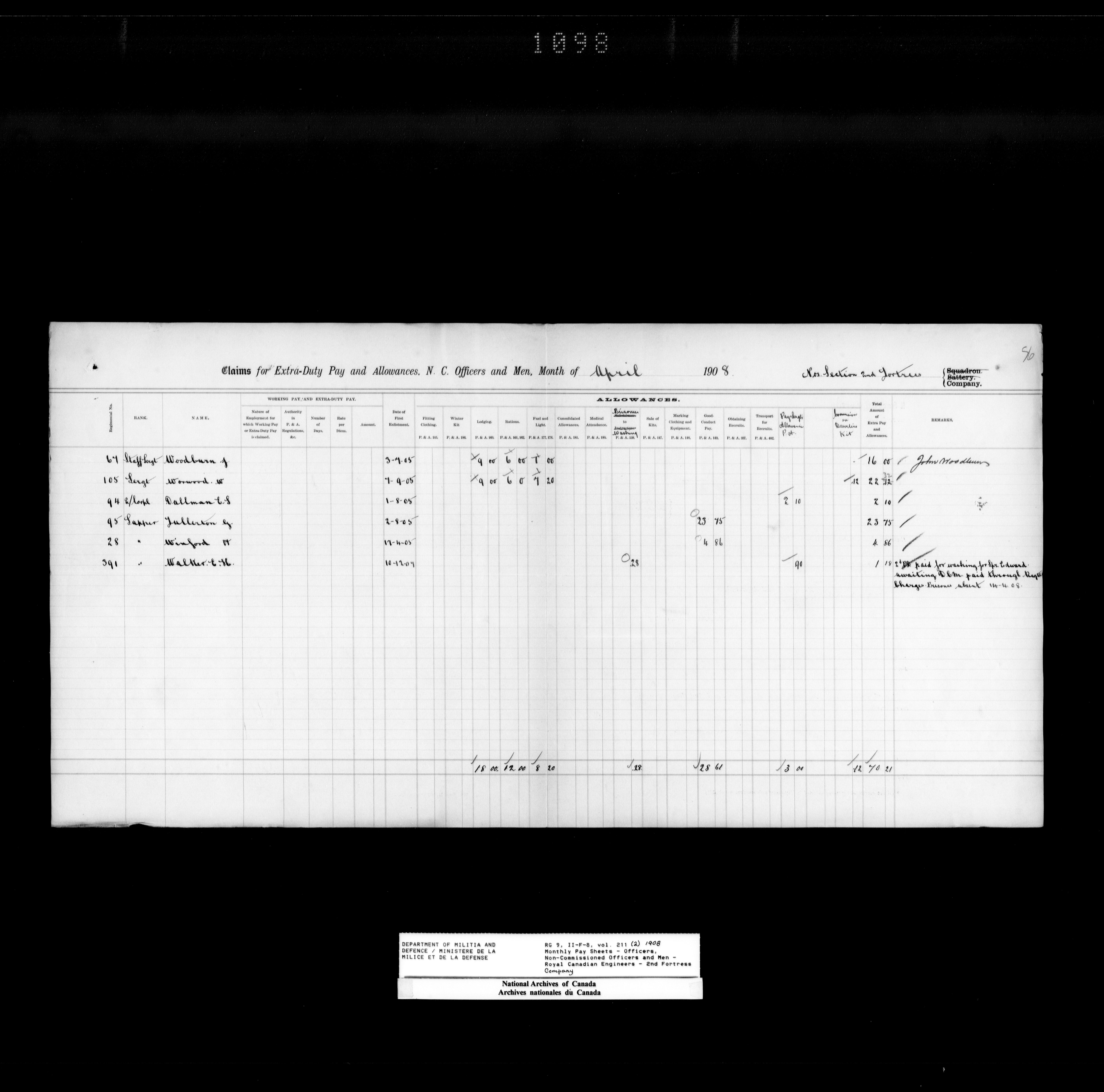 Nominal rolls and paylists for the Permanent Force (1871-1915) - 18405