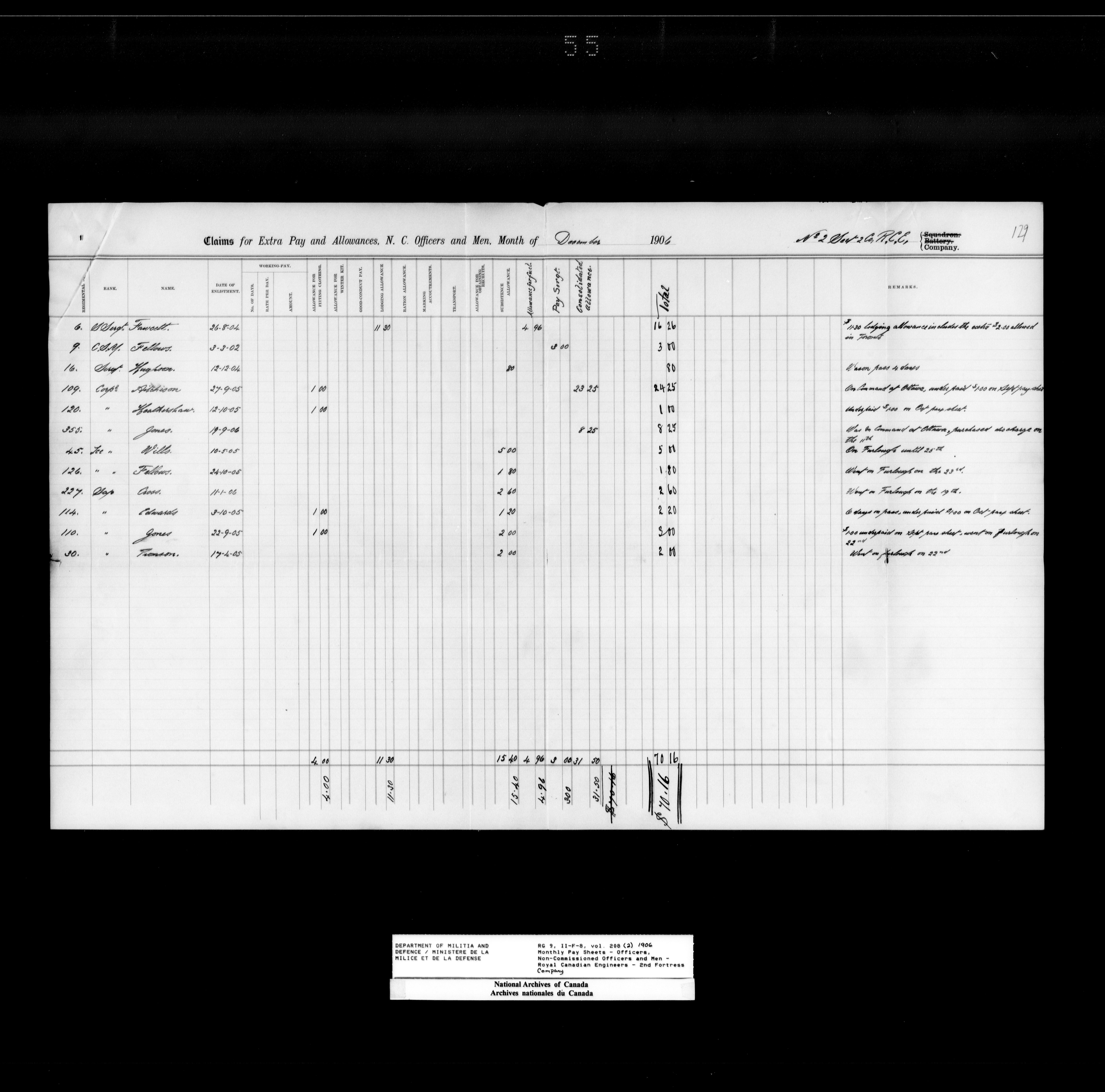 Nominal rolls and paylists for the Permanent Force (1871-1915) - 18405