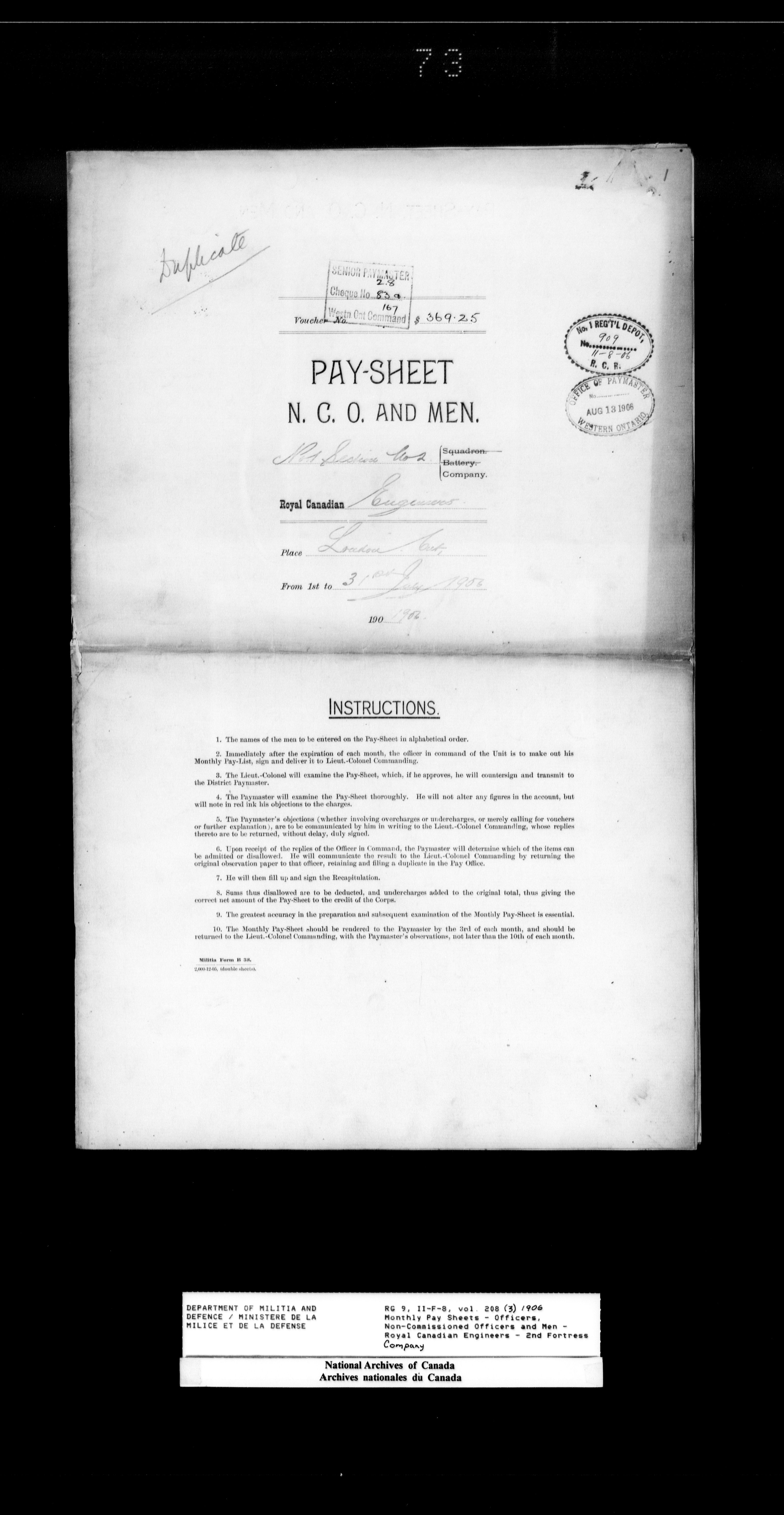 Nominal rolls and paylists for the Permanent Force (1871-1915) - 18405