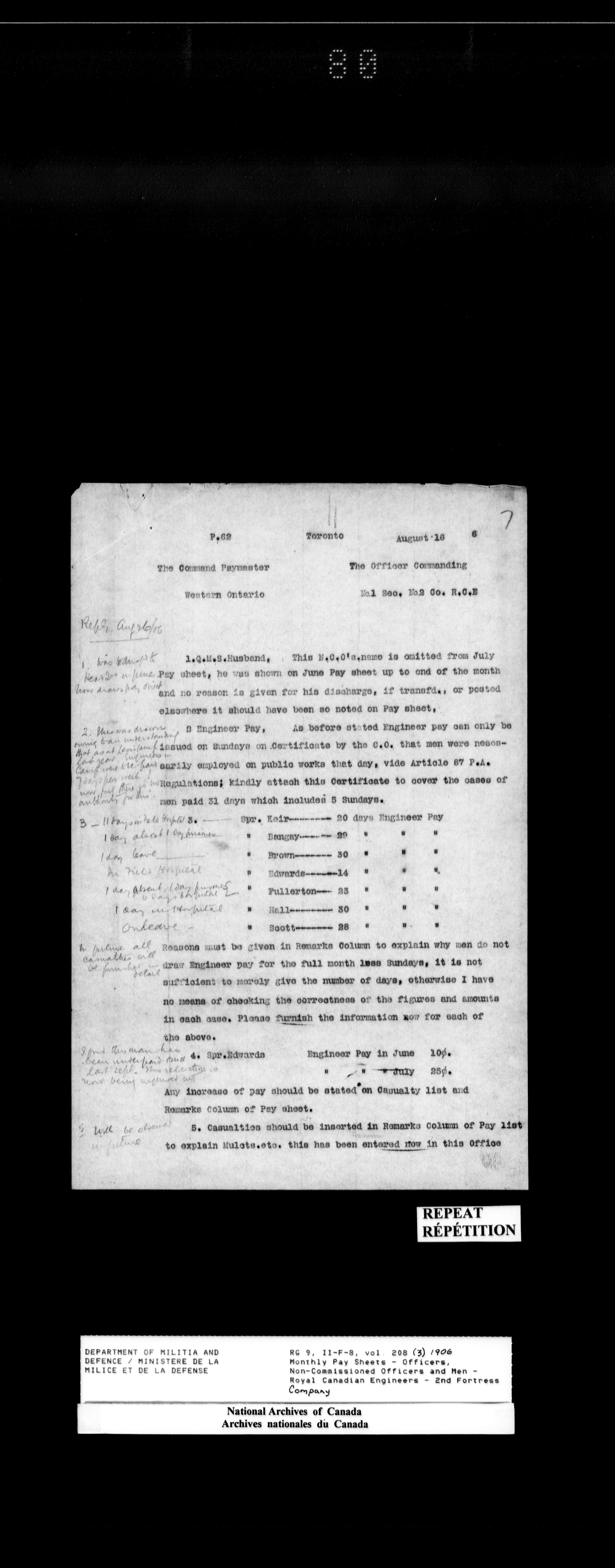 Nominal rolls and paylists for the Permanent Force (1871-1915) - 18405