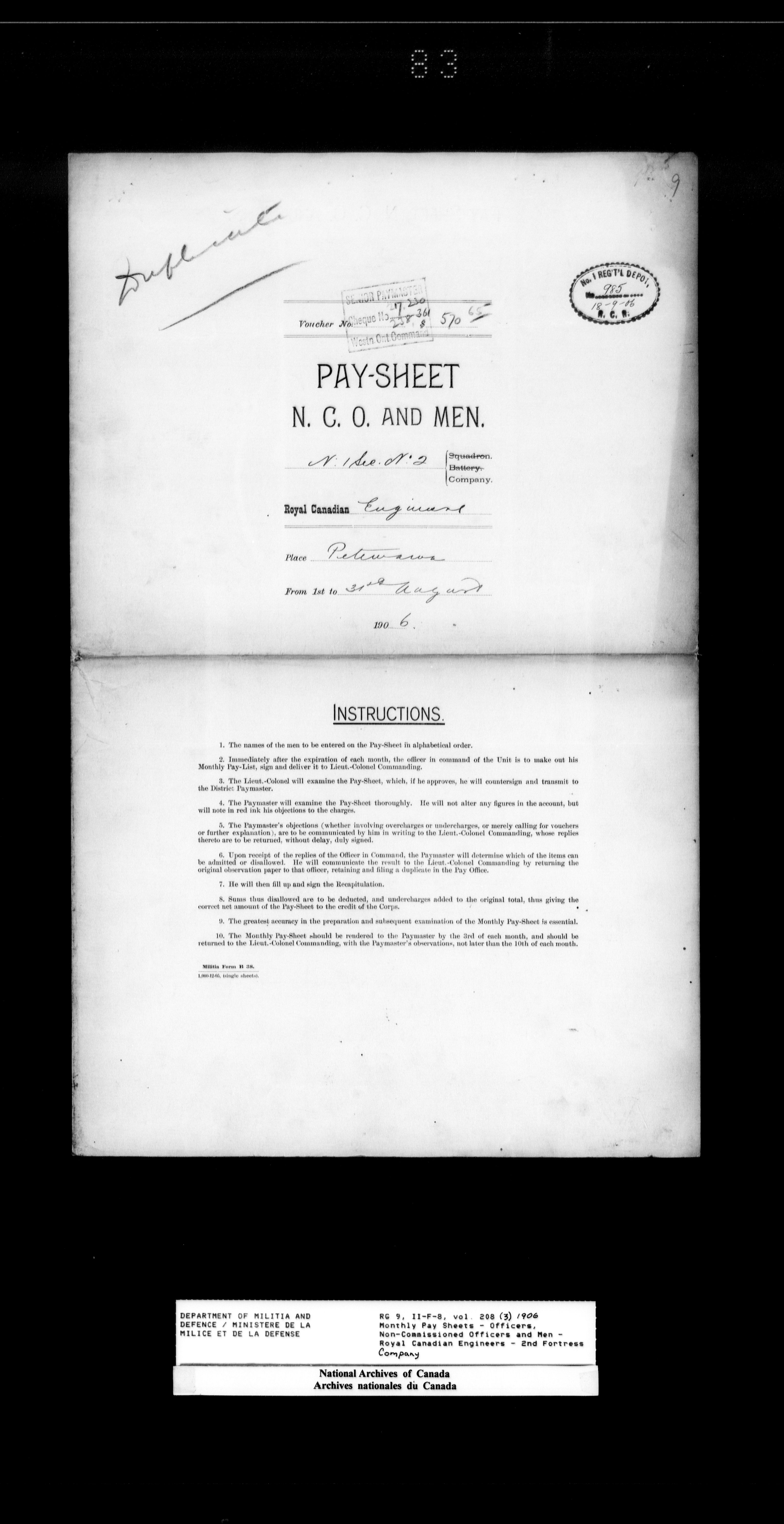 Nominal rolls and paylists for the Permanent Force (1871-1915) - 18405