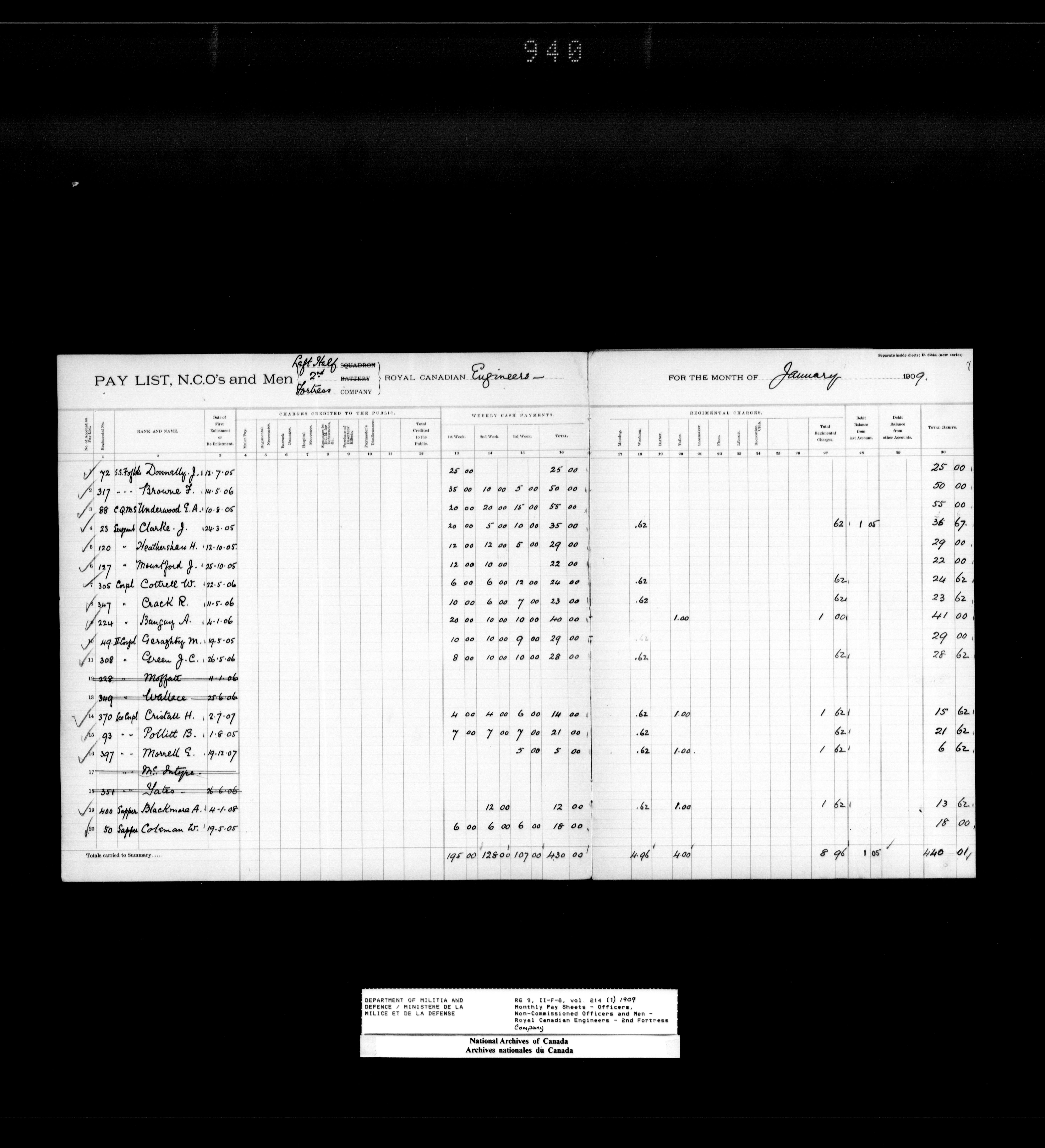 Nominal rolls and paylists for the Permanent Force (1871-1915) - 18406