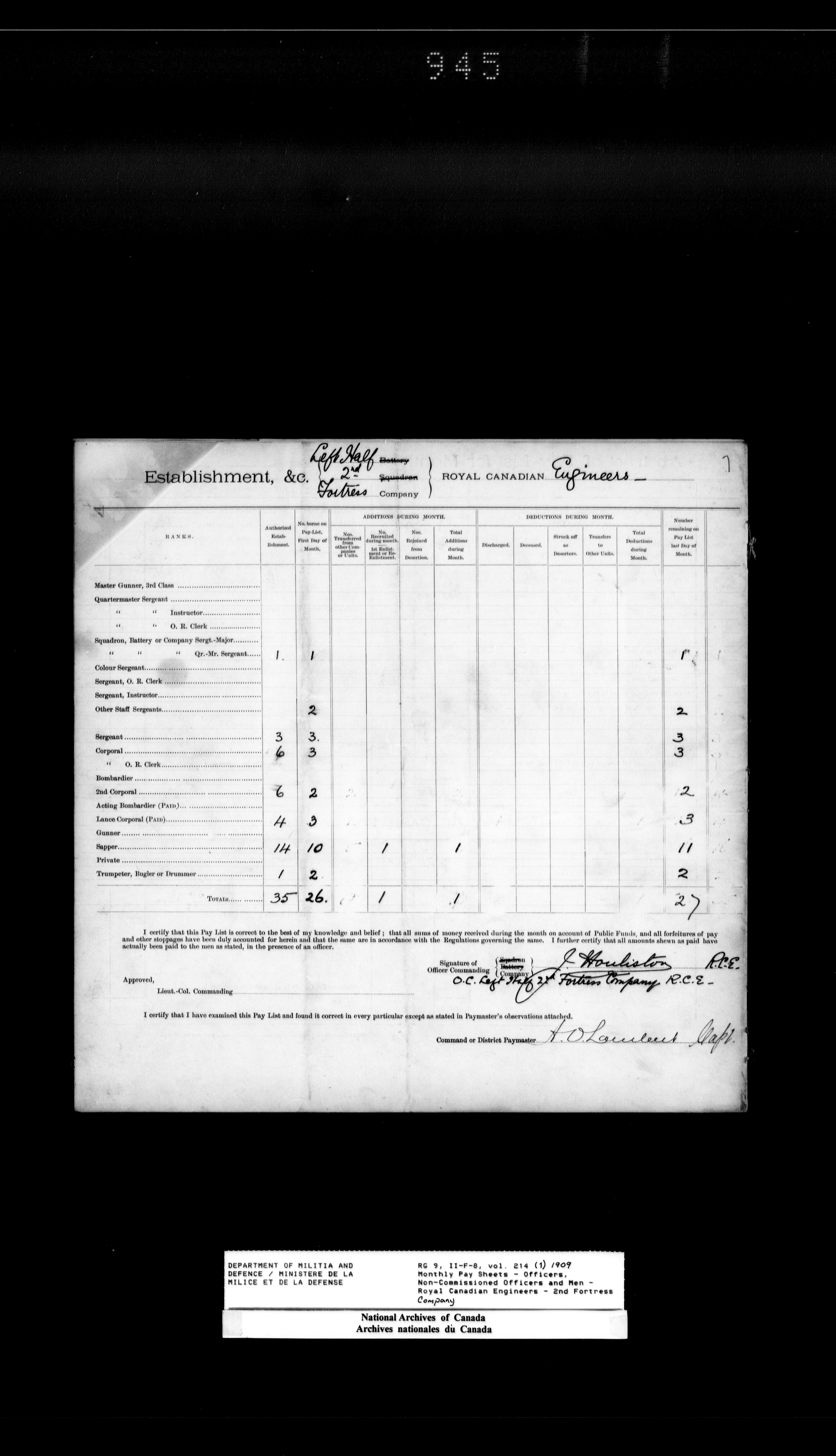 Nominal rolls and paylists for the Permanent Force (1871-1915) - 18406