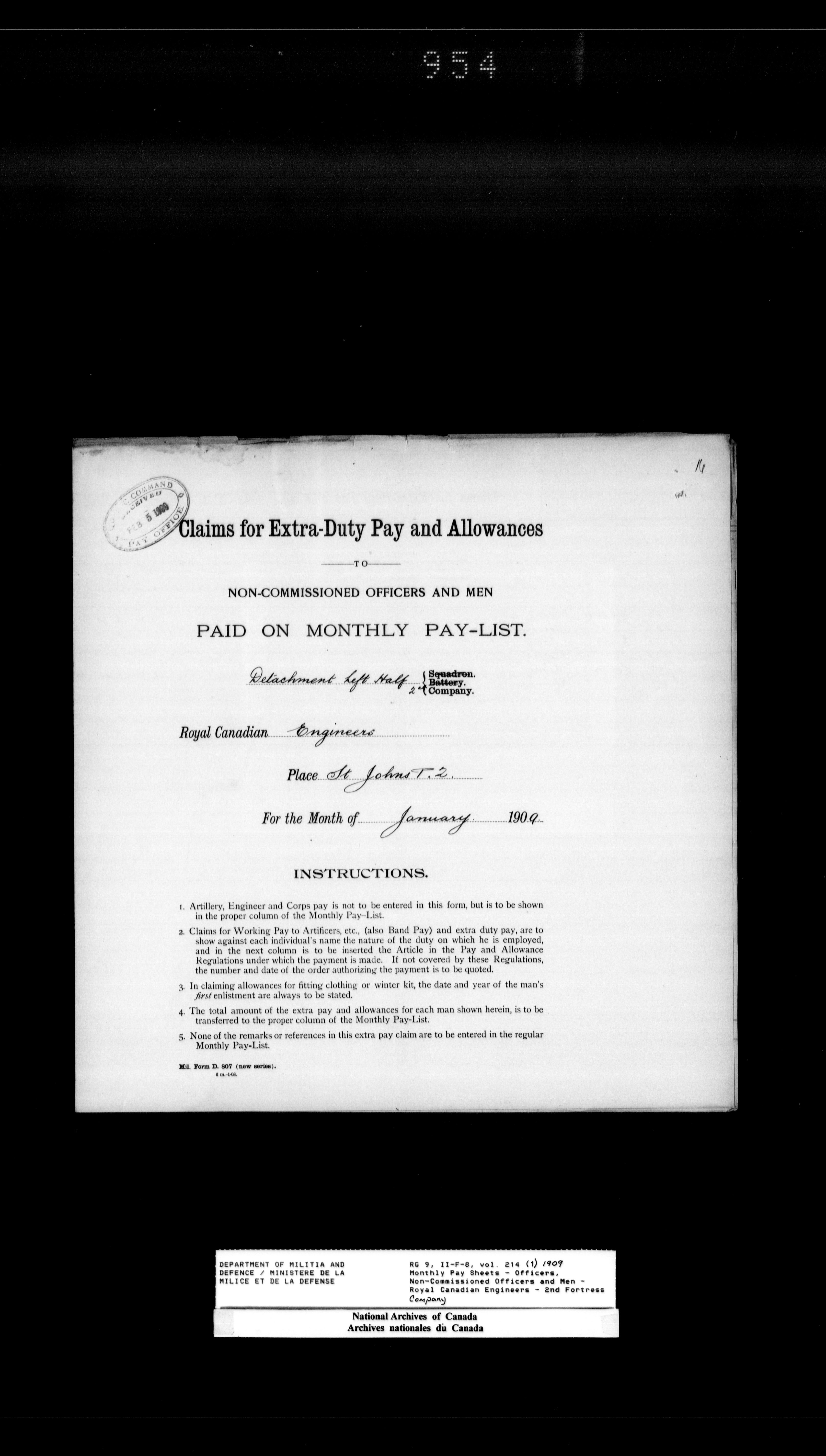 Nominal rolls and paylists for the Permanent Force (1871-1915) - 18406