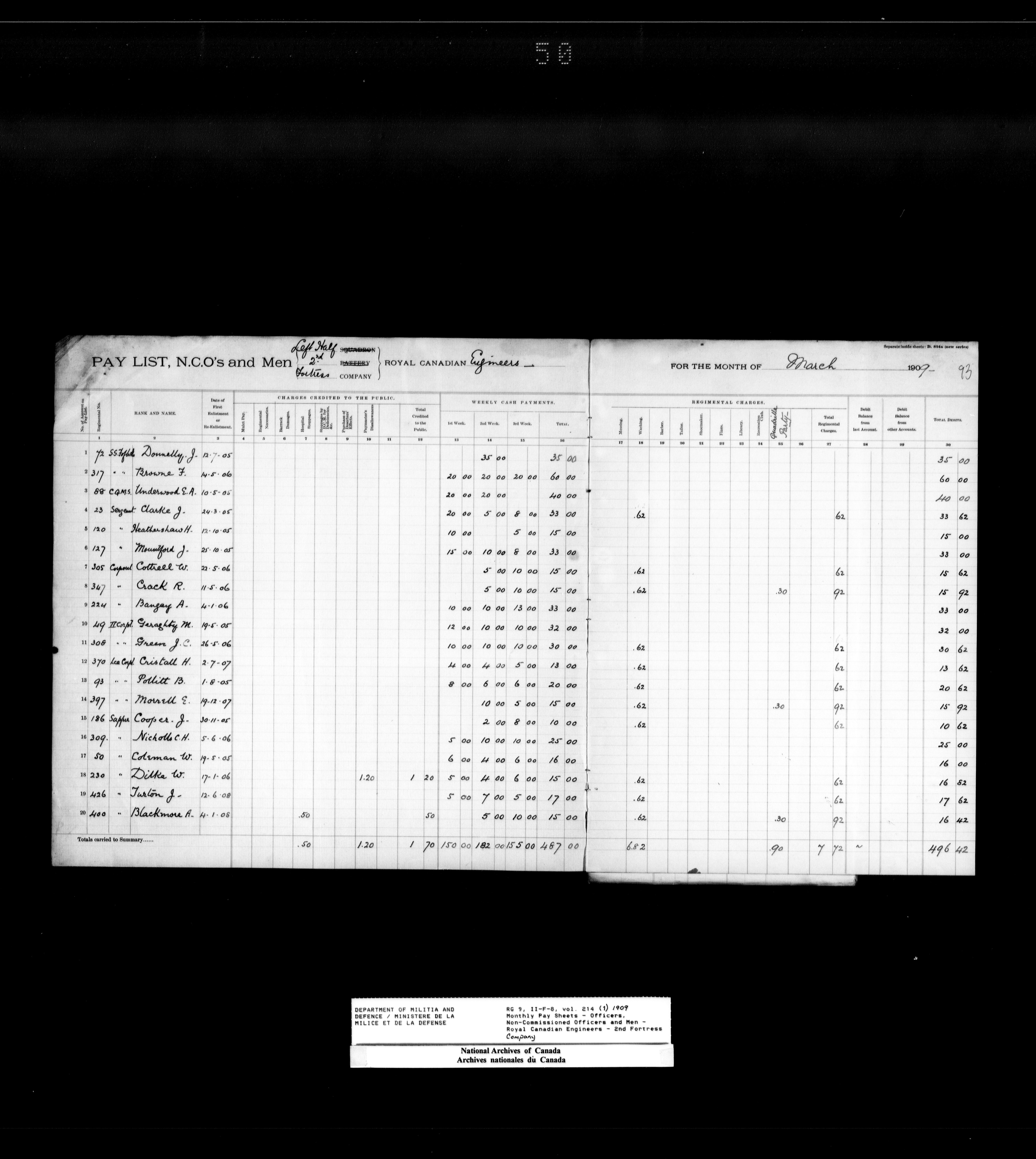 Nominal rolls and paylists for the Permanent Force (1871-1915) - 18407