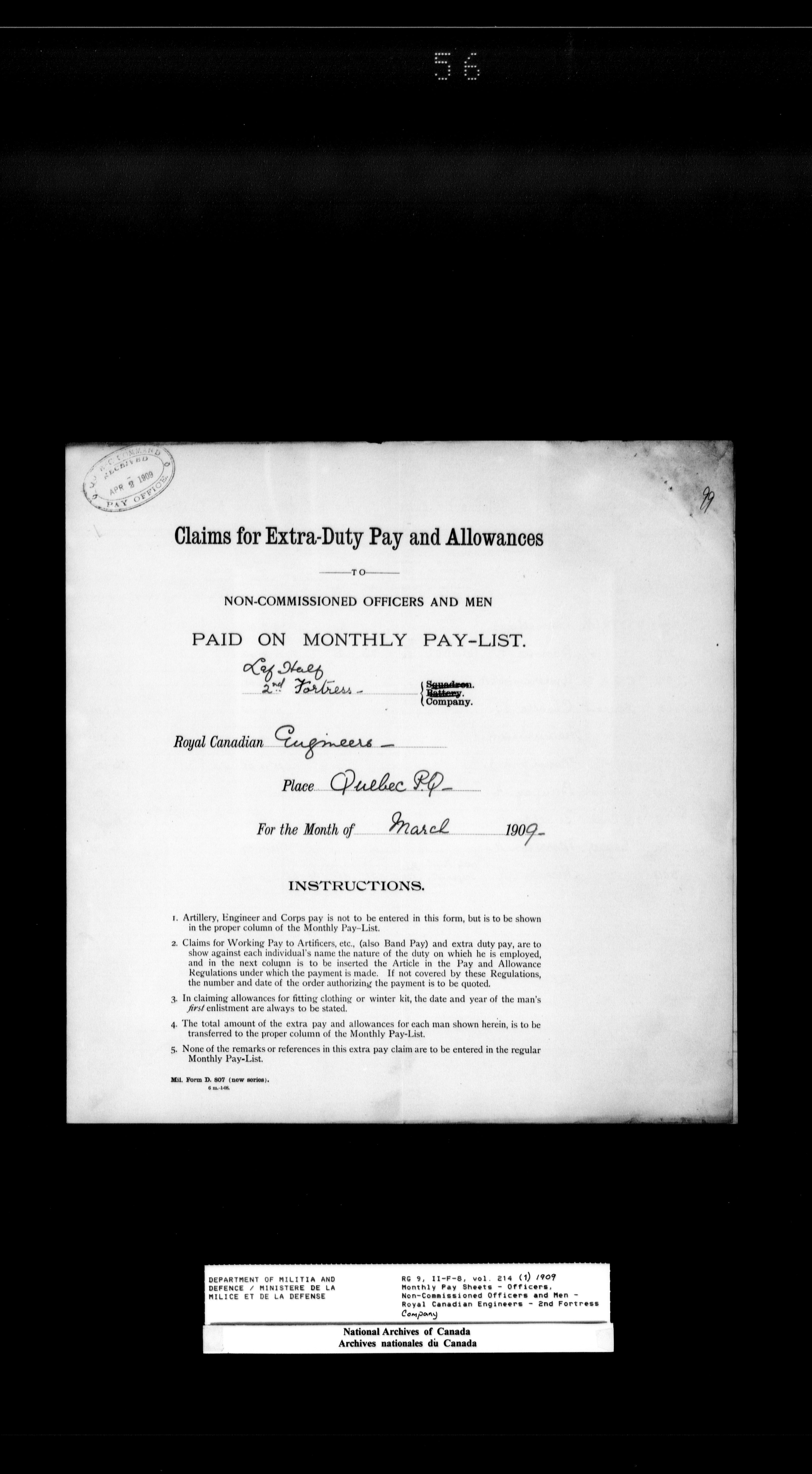 Nominal rolls and paylists for the Permanent Force (1871-1915) - 18407