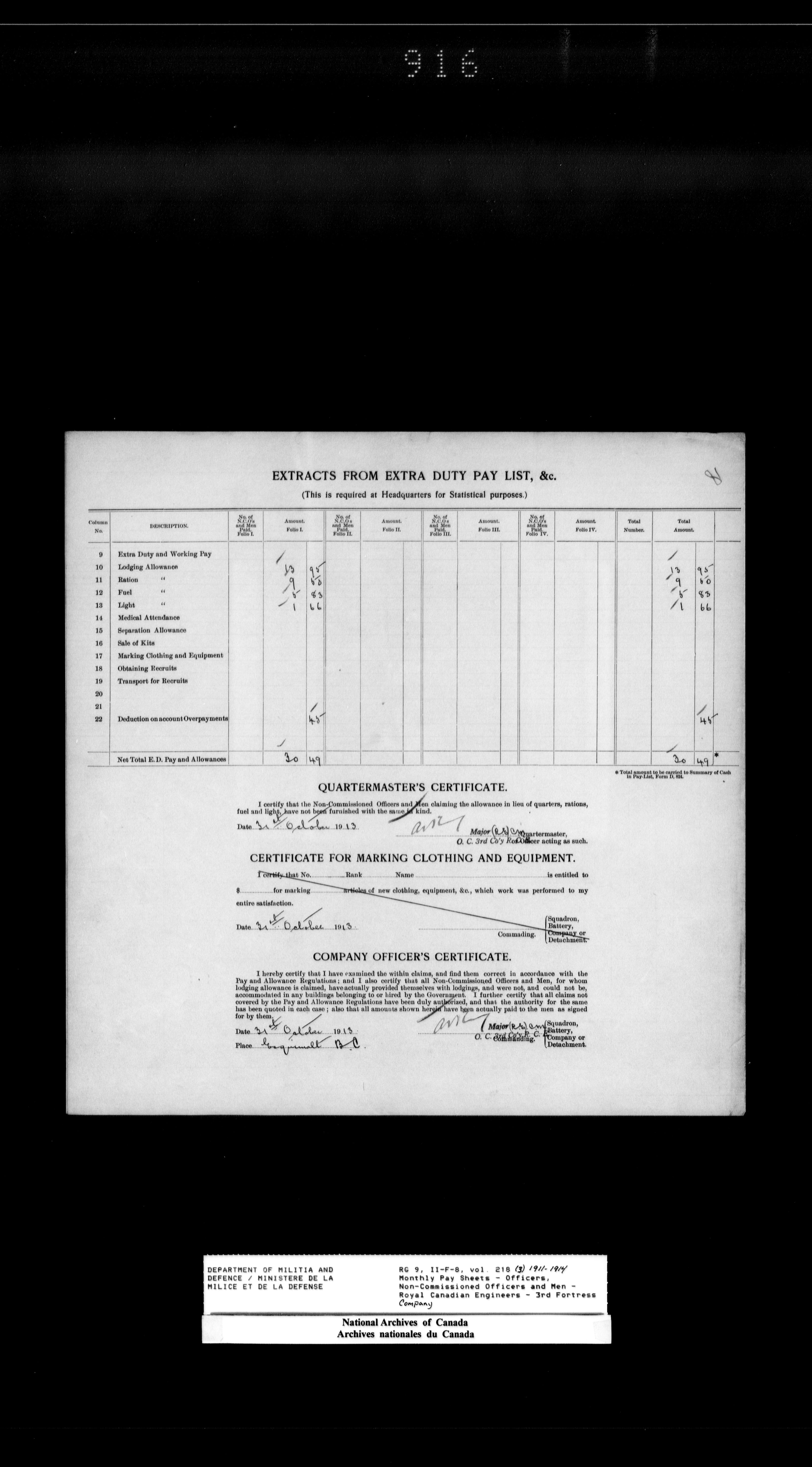 Nominal rolls and paylists for the Permanent Force (1871-1915) - 18408