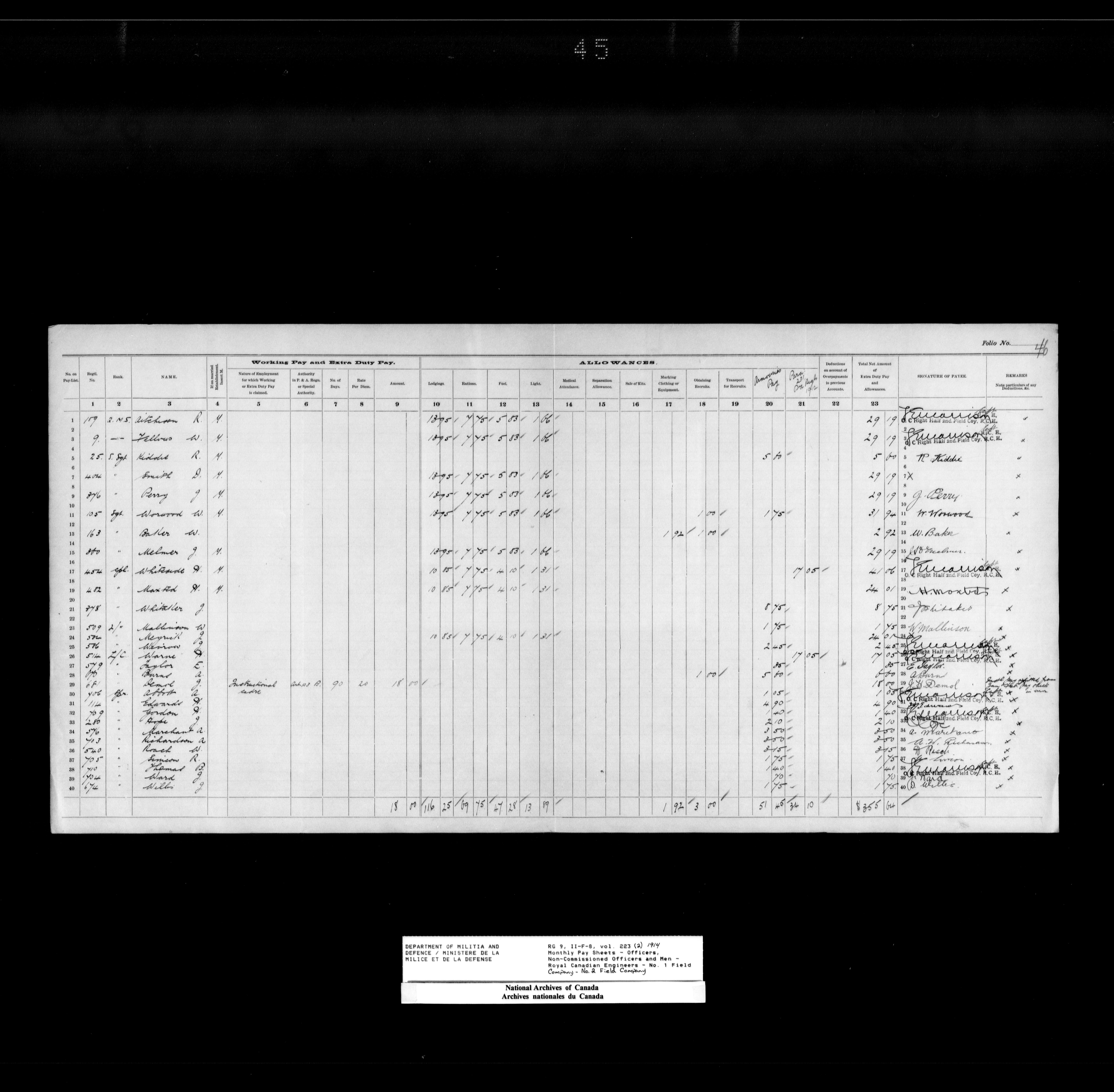 Nominal rolls and paylists for the Permanent Force (1871-1915) - 18411
