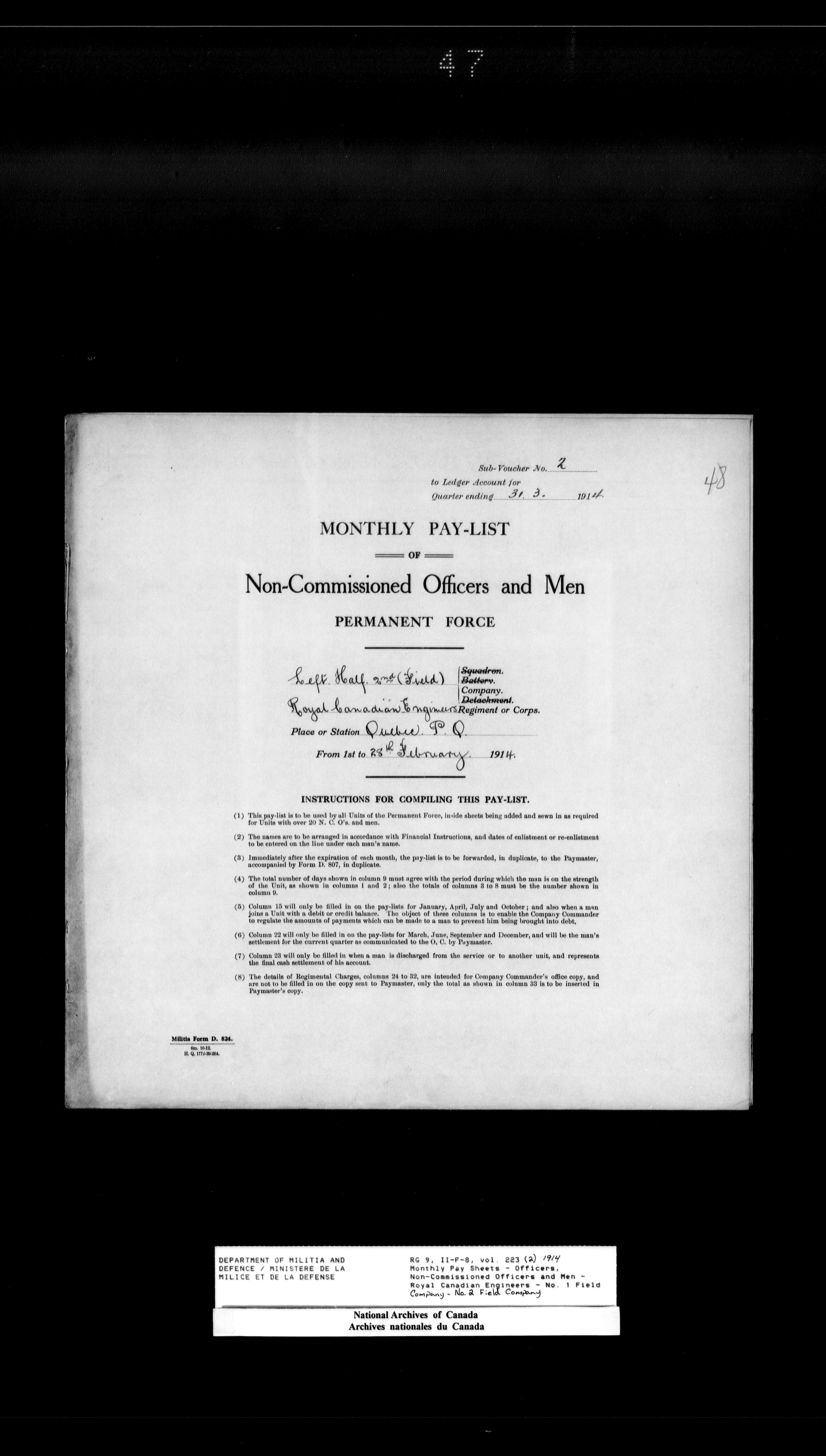 Nominal rolls and paylists for the Permanent Force (1871-1915) - 18411