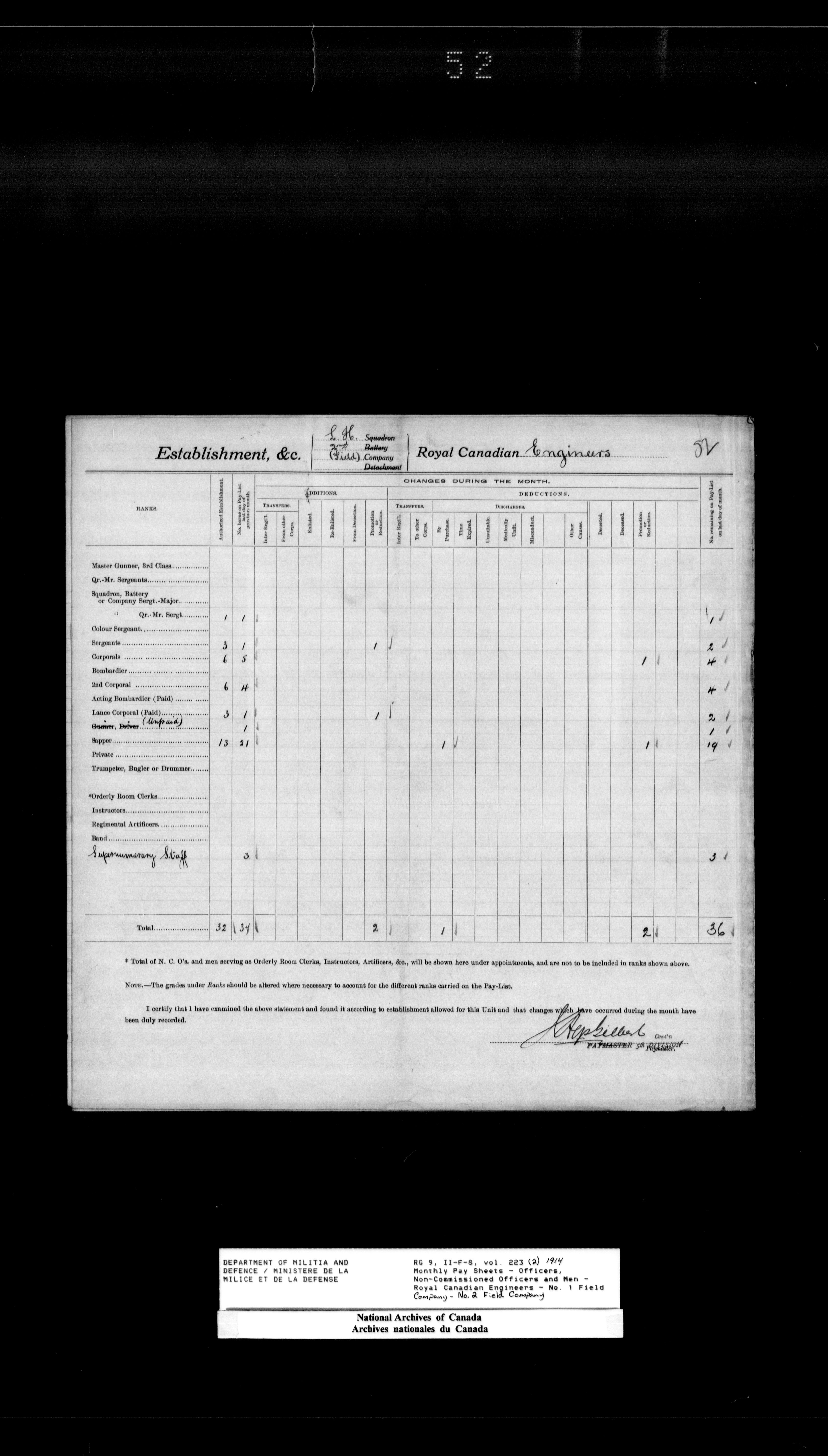 Nominal rolls and paylists for the Permanent Force (1871-1915) - 18411