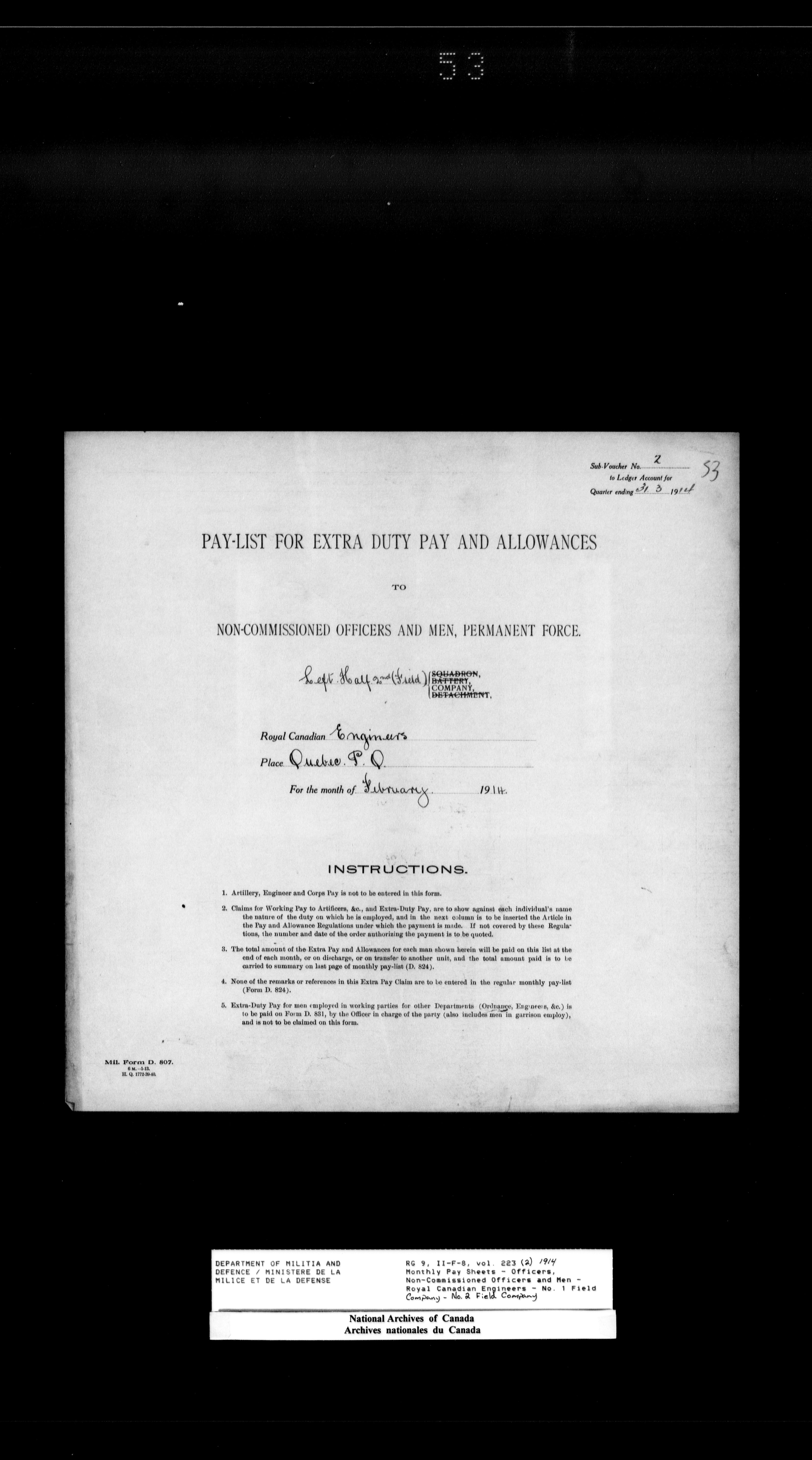 Nominal rolls and paylists for the Permanent Force (1871-1915) - 18411