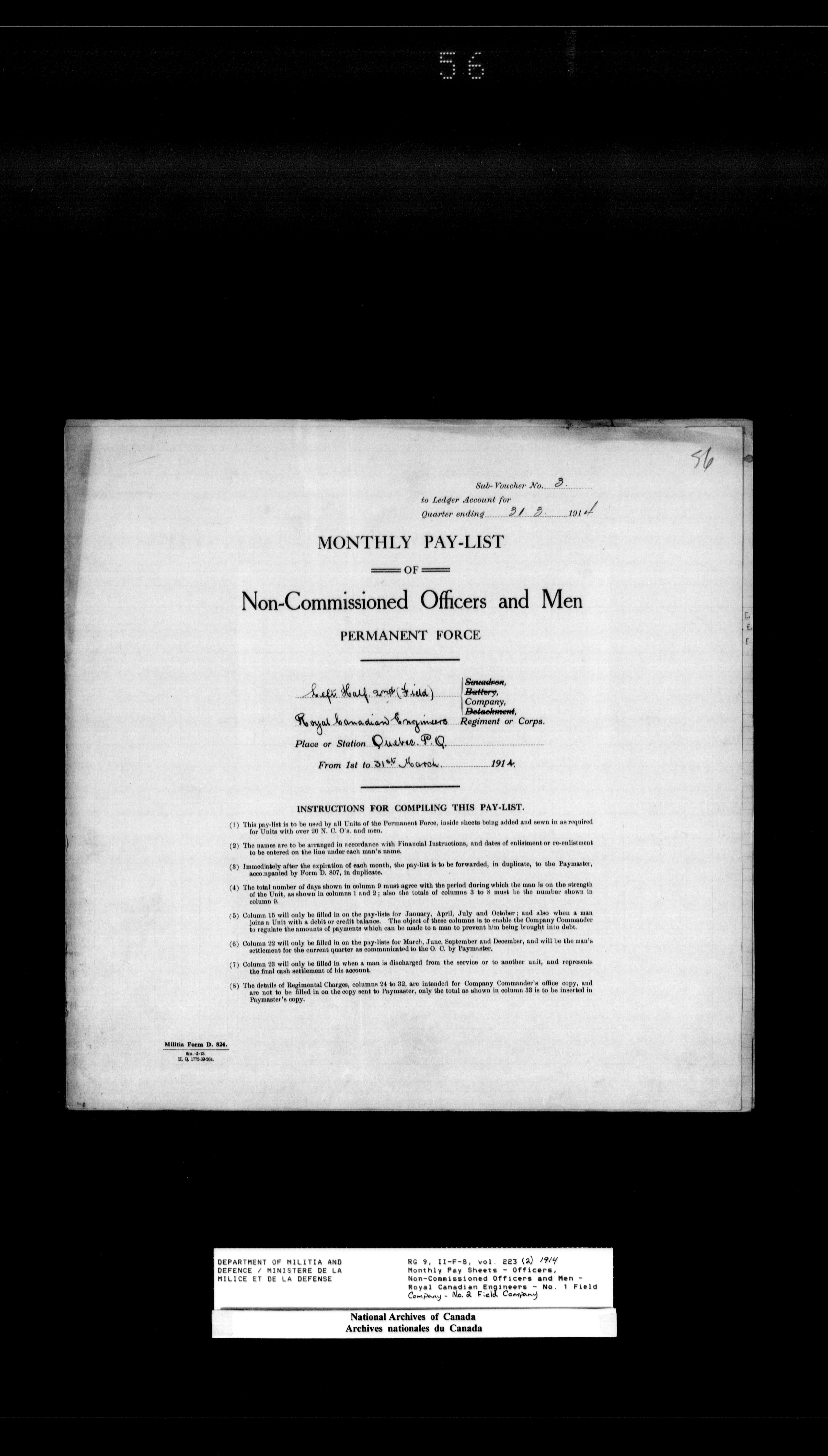 Nominal rolls and paylists for the Permanent Force (1871-1915) - 18411