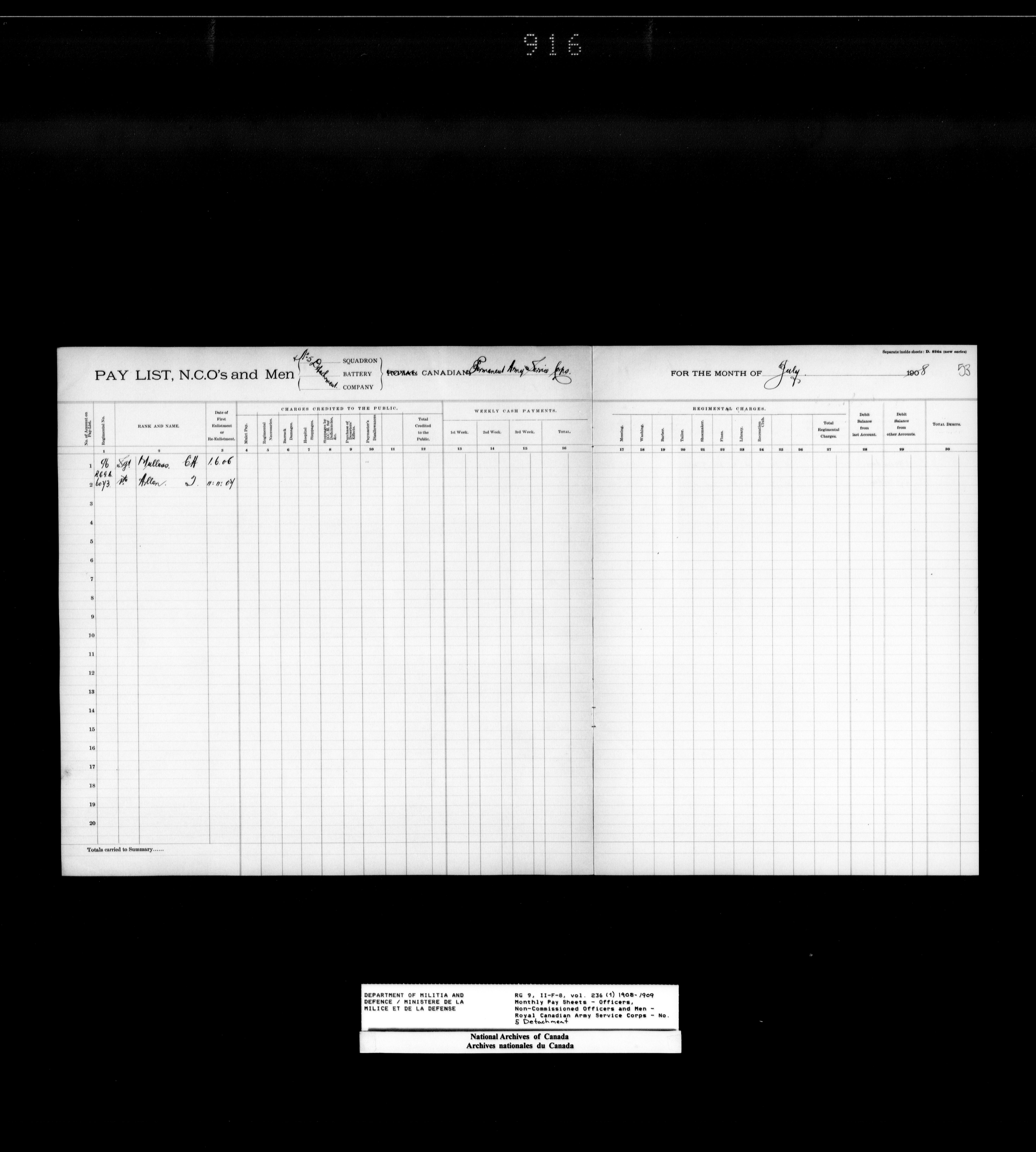 Nominal rolls and paylists for the Permanent Force (1871-1915) - 18415