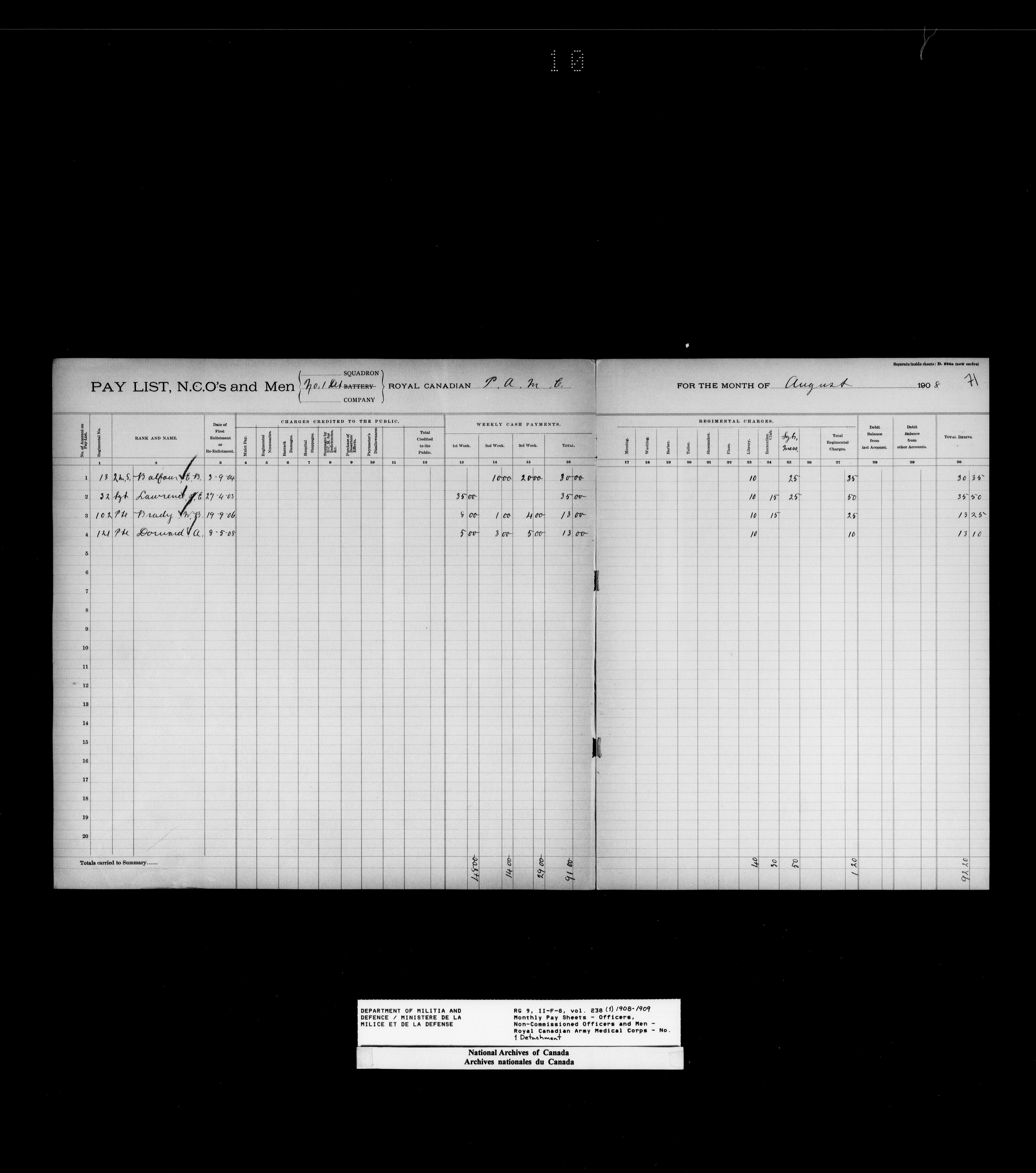 Nominal rolls and paylists for the Permanent Force (1871-1915) - 18417