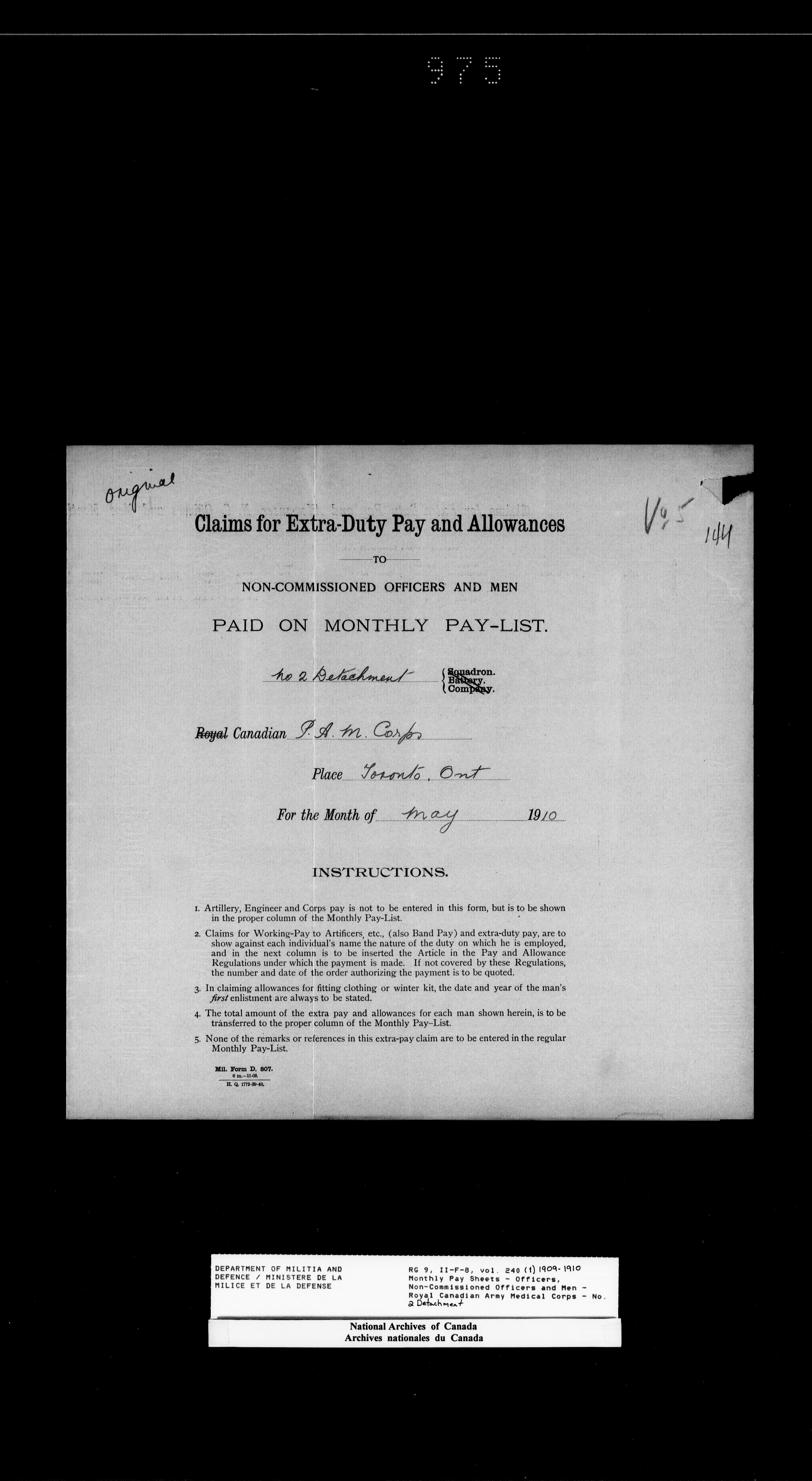 Nominal rolls and paylists for the Permanent Force (1871-1915) - 18417