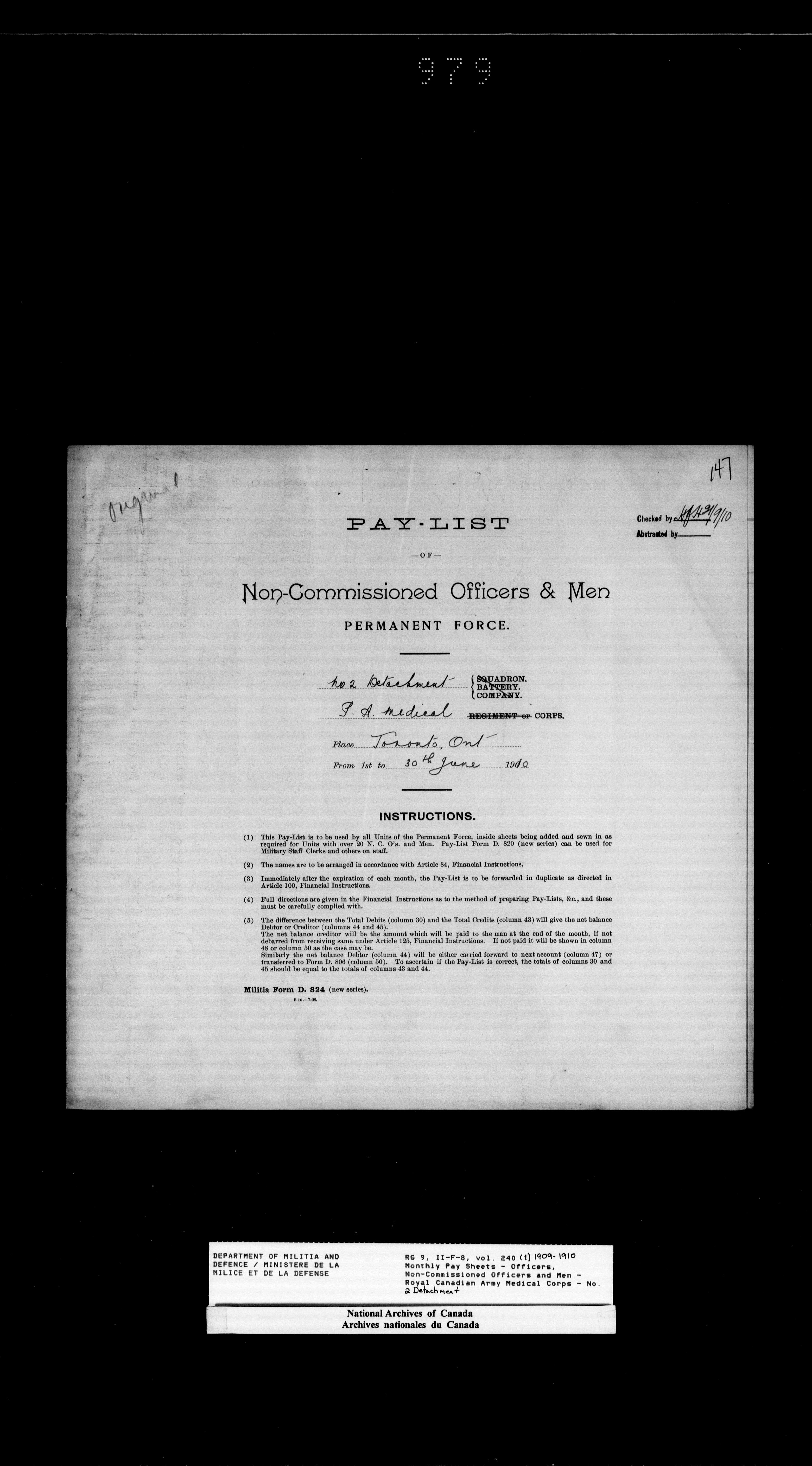 Nominal rolls and paylists for the Permanent Force (1871-1915) - 18417