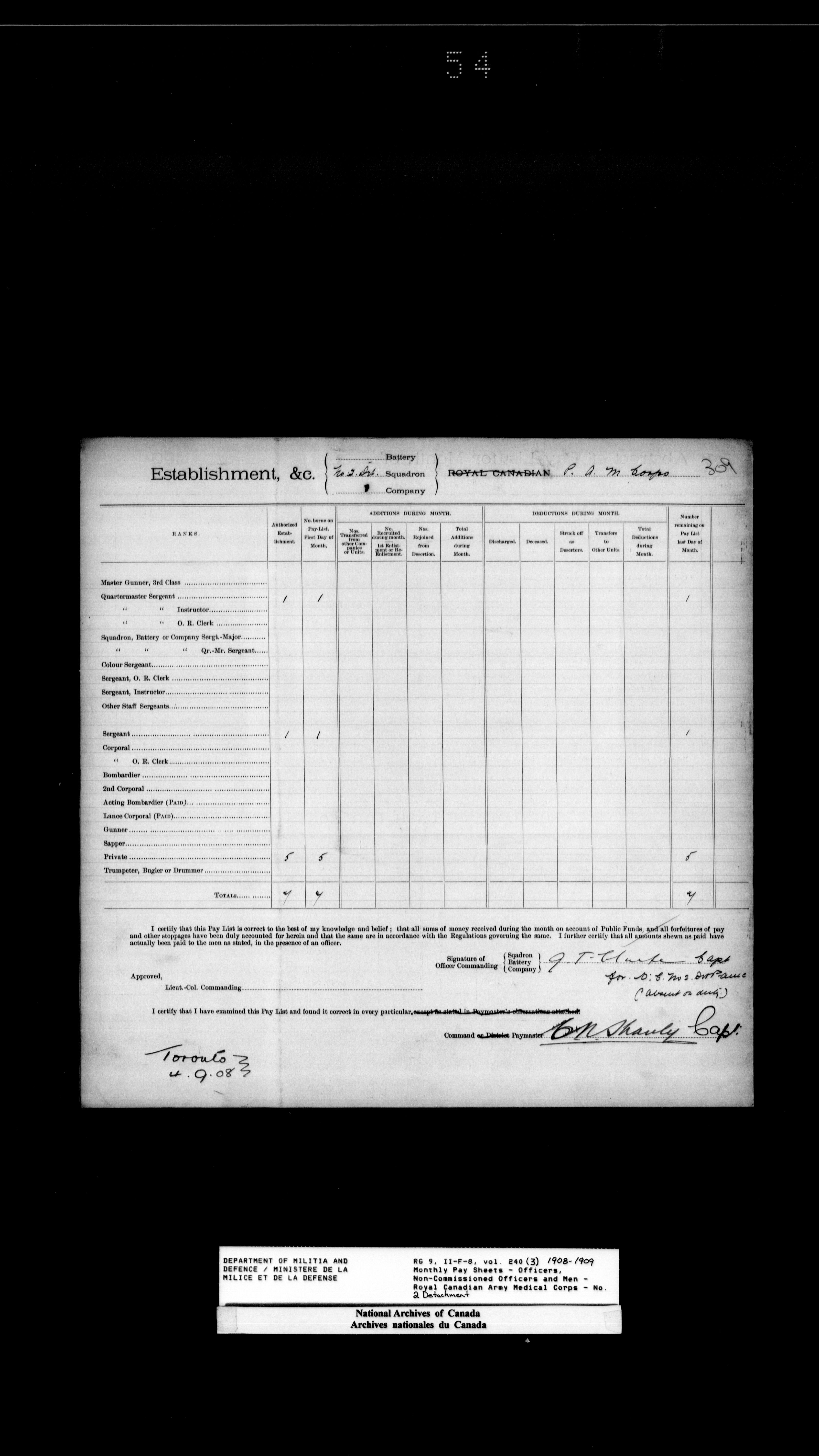 Nominal rolls and paylists for the Permanent Force (1871-1915) - 18418