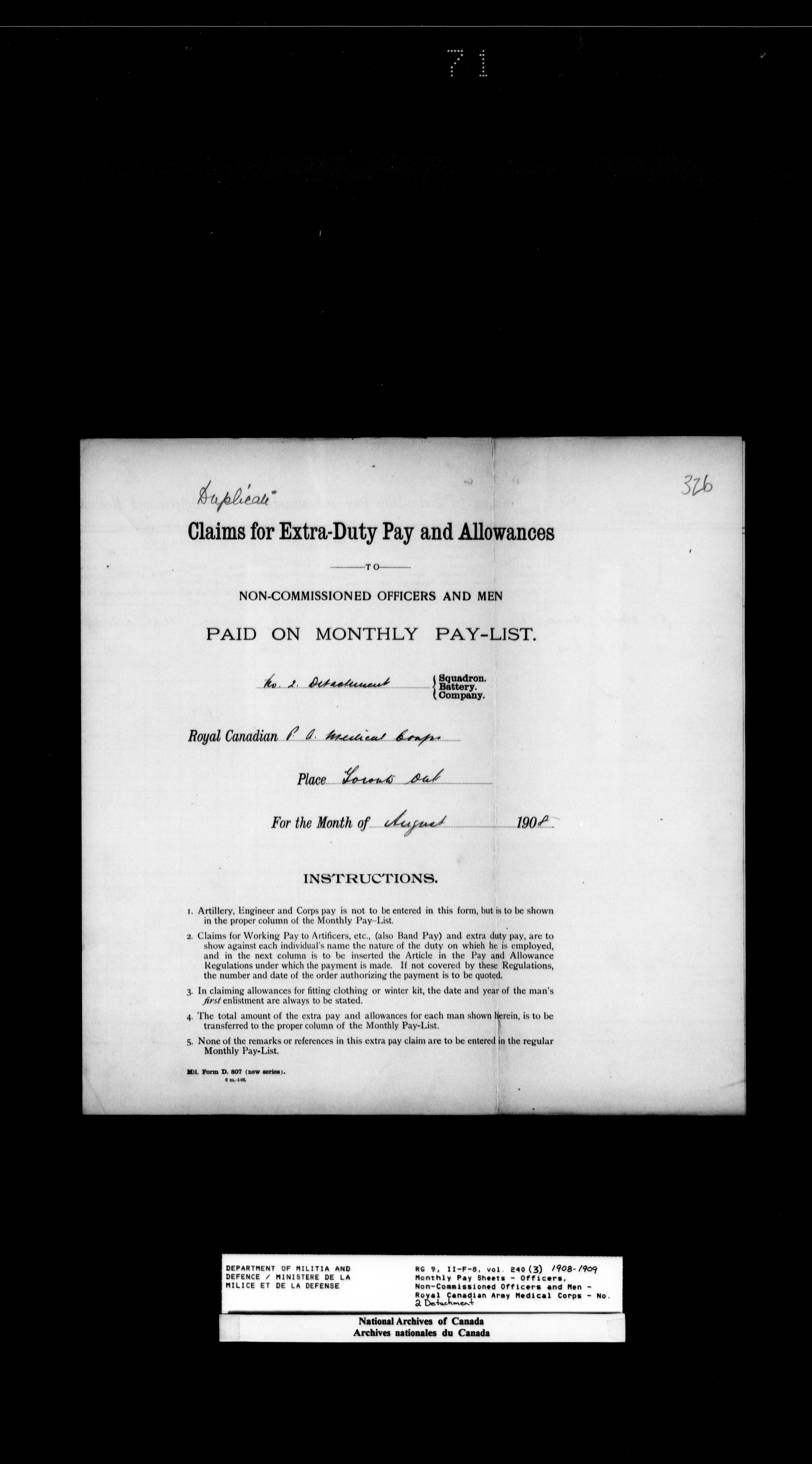 Nominal rolls and paylists for the Permanent Force (1871-1915) - 18418