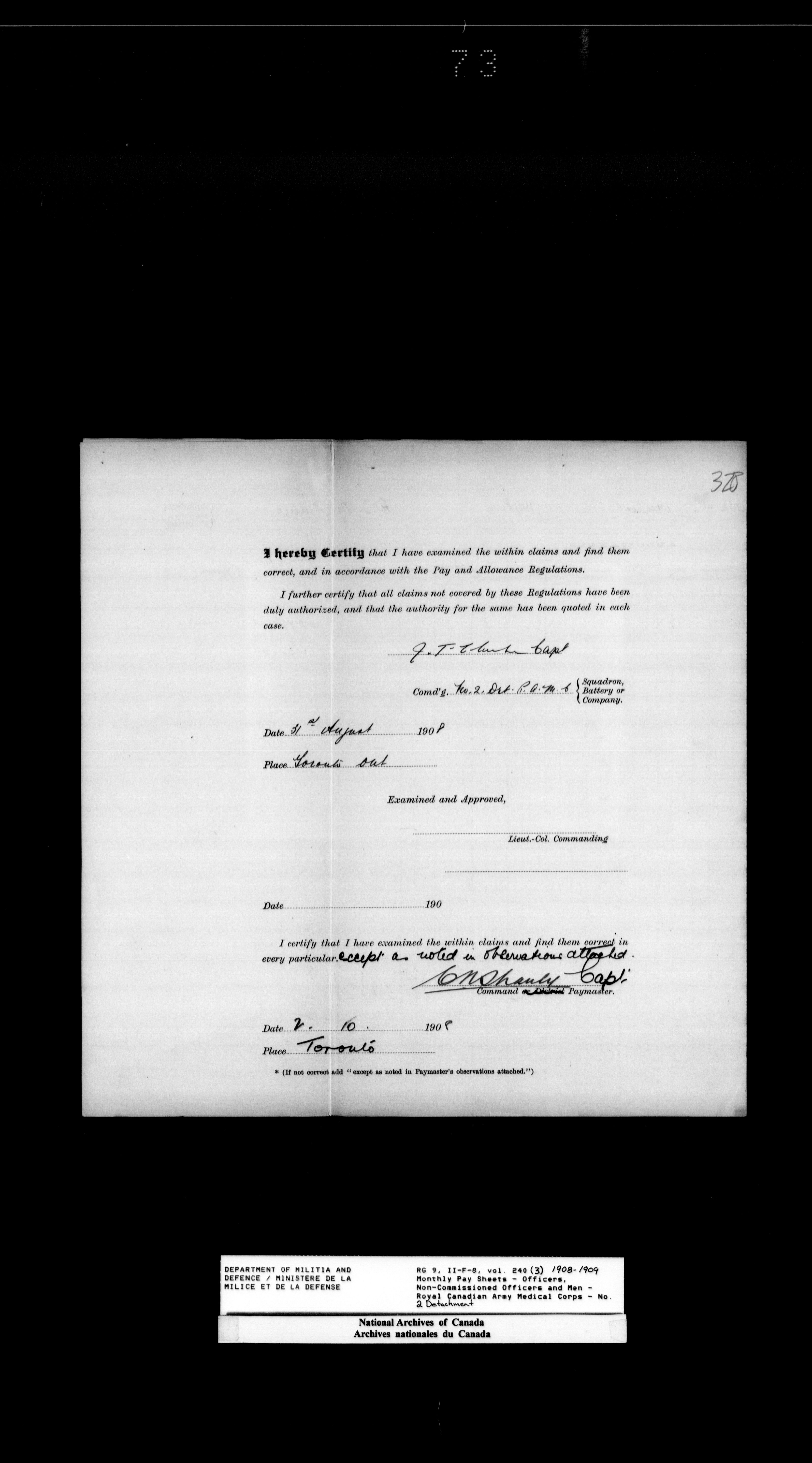 Nominal rolls and paylists for the Permanent Force (1871-1915) - 18418