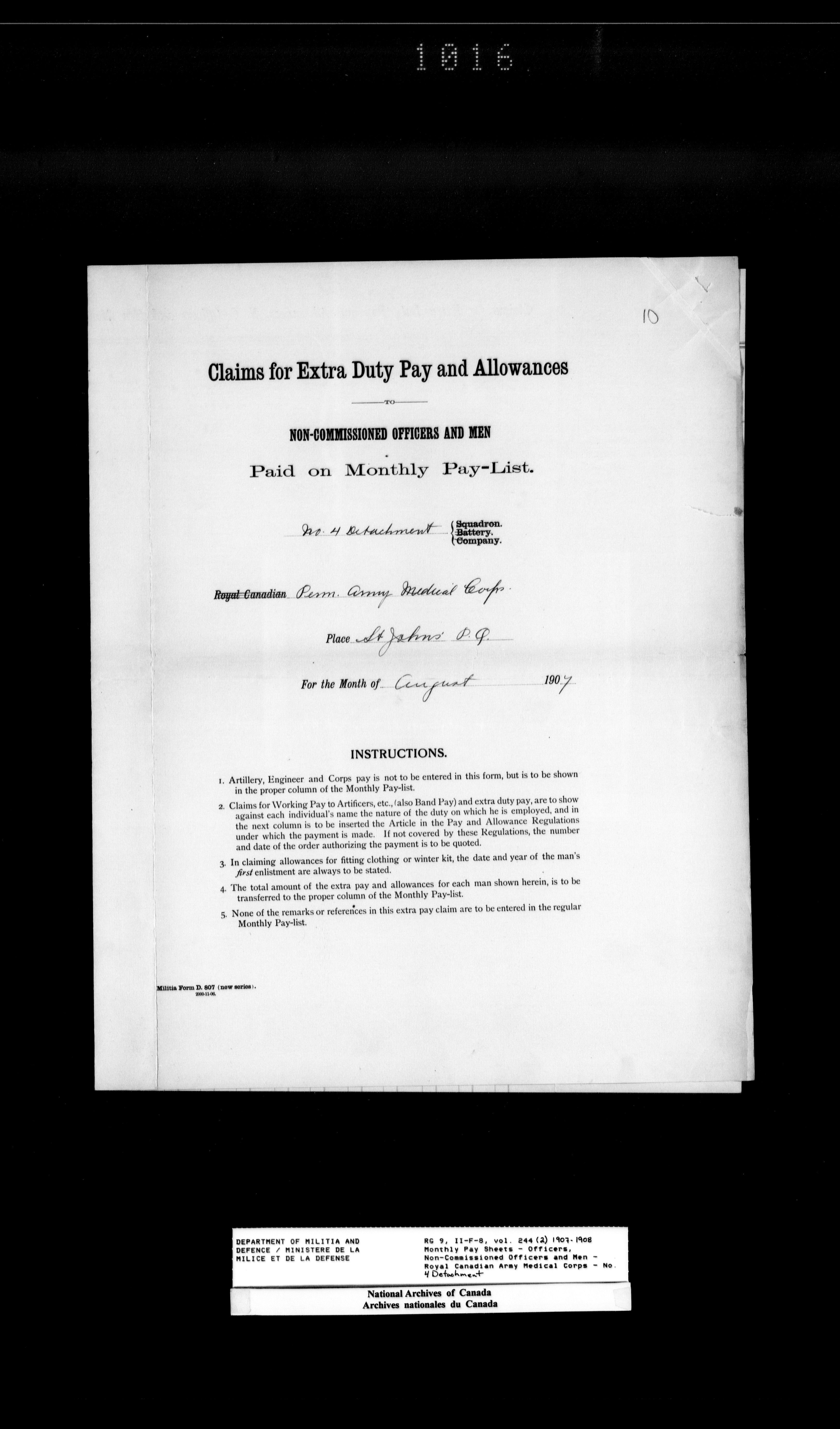 Nominal rolls and paylists for the Permanent Force (1871-1915) - 18419