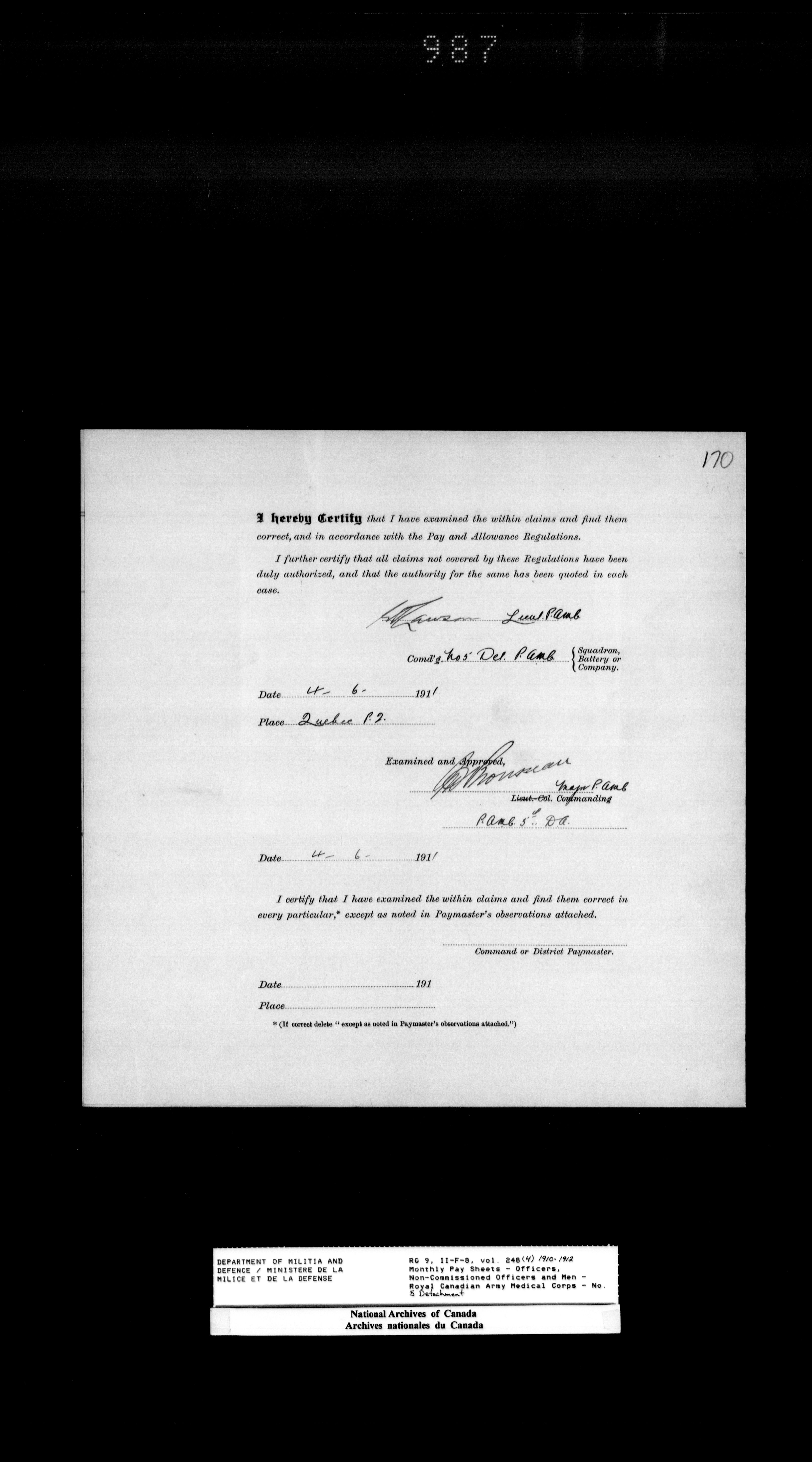 Nominal rolls and paylists for the Permanent Force (1871-1915) - 18421