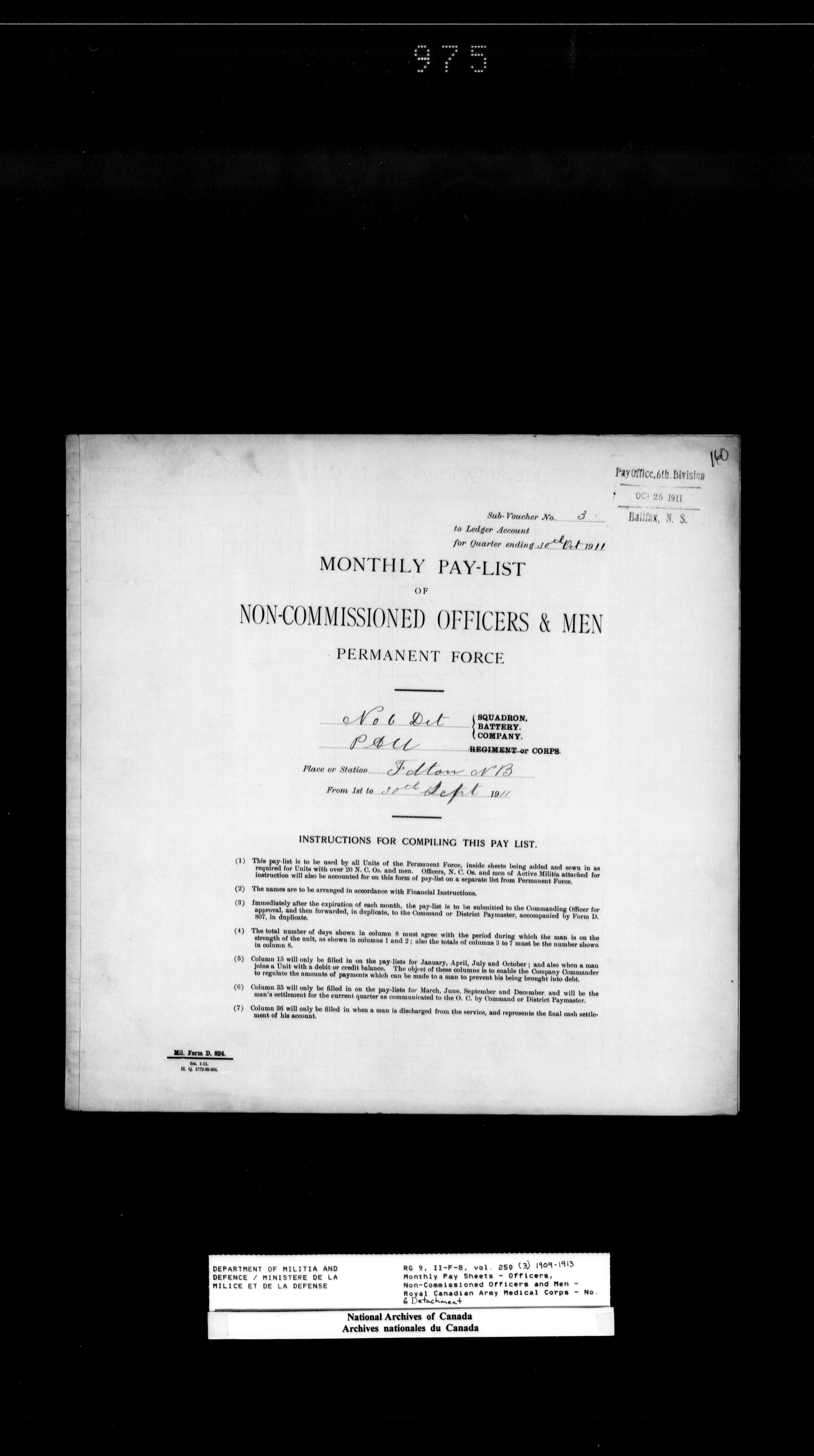 Nominal rolls and paylists for the Permanent Force (1871-1915) - 18422