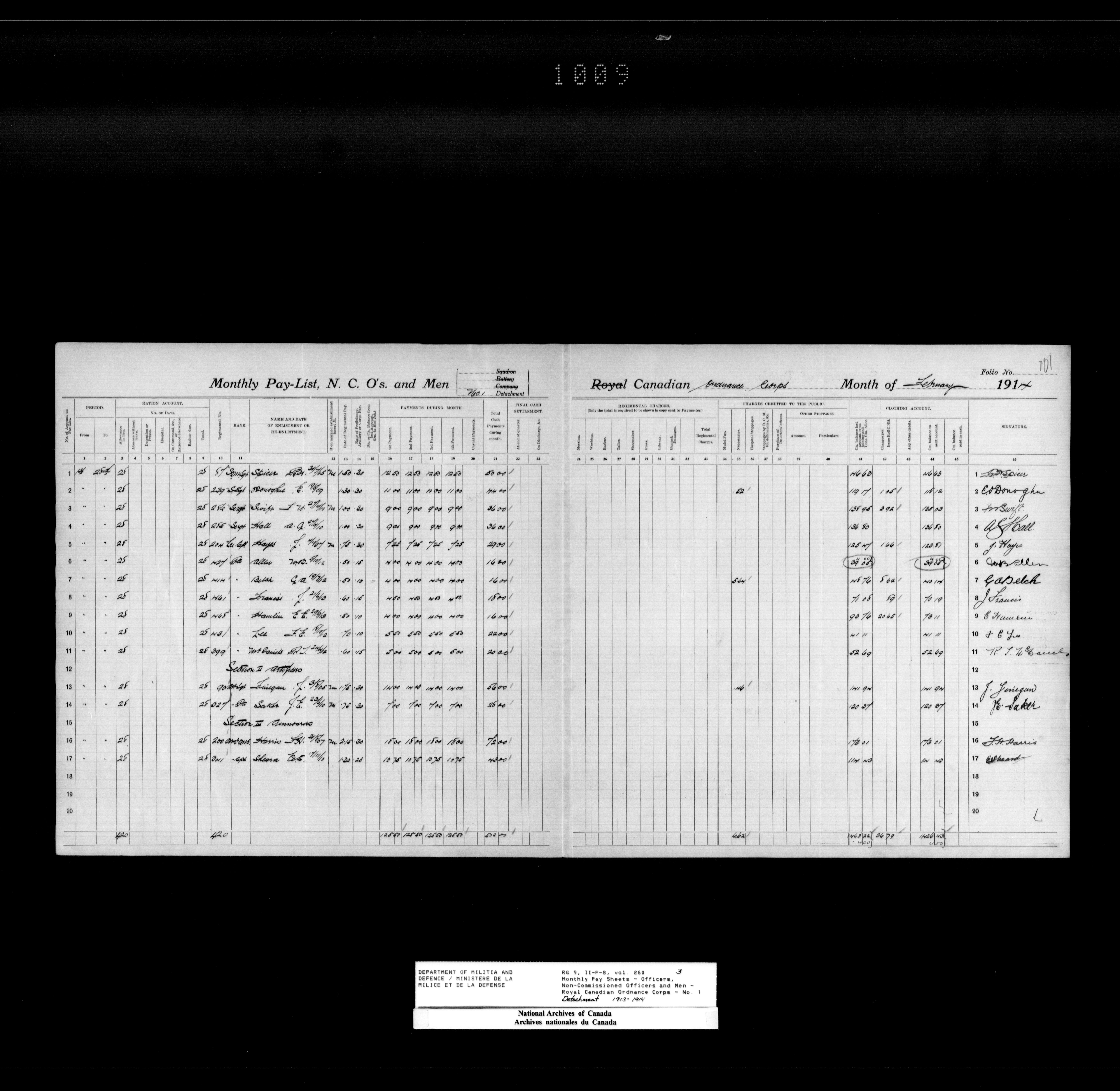 Nominal rolls and paylists for the Permanent Force (1871-1915) - 18427