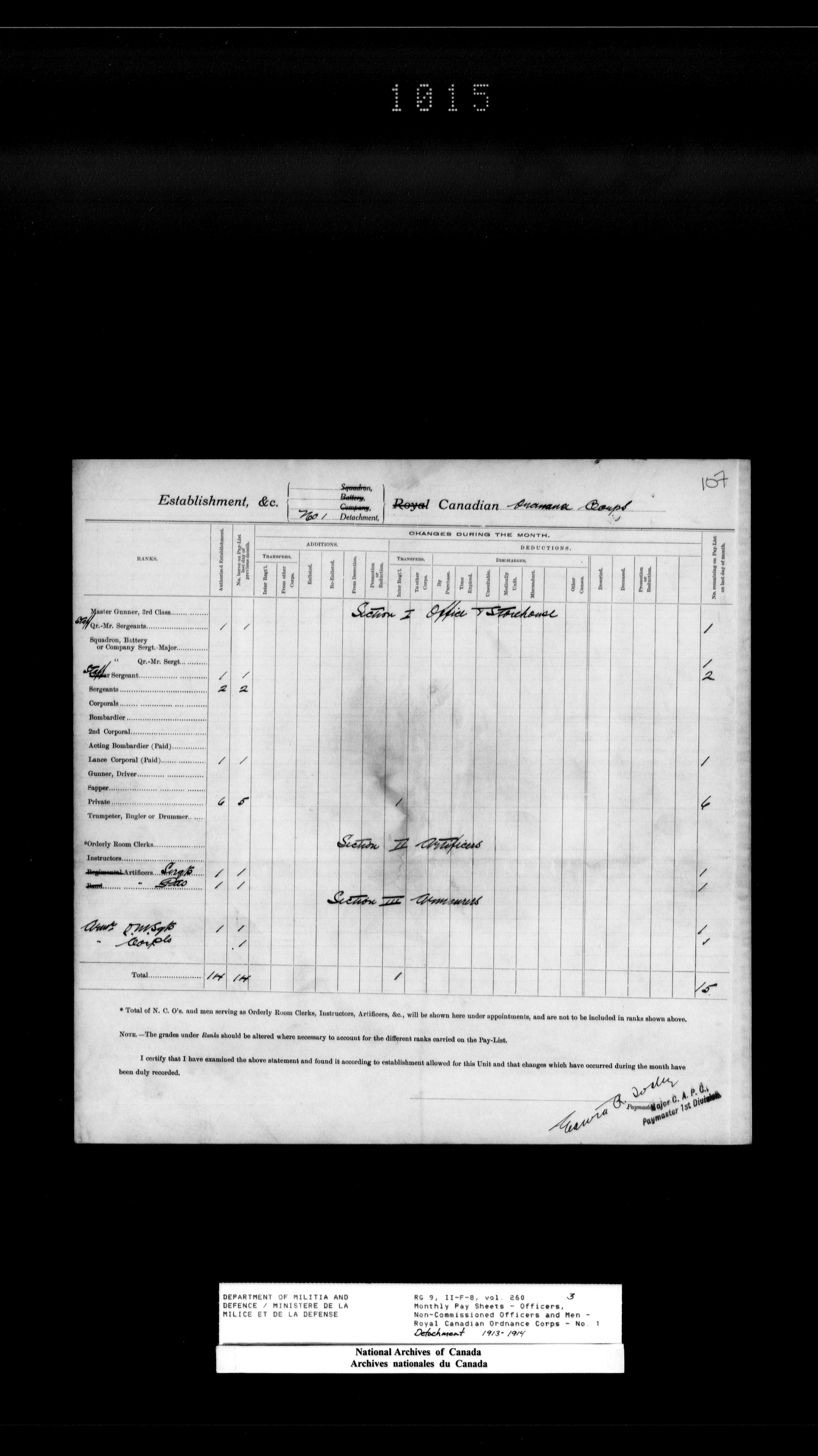 Nominal rolls and paylists for the Permanent Force (1871-1915) - 18427