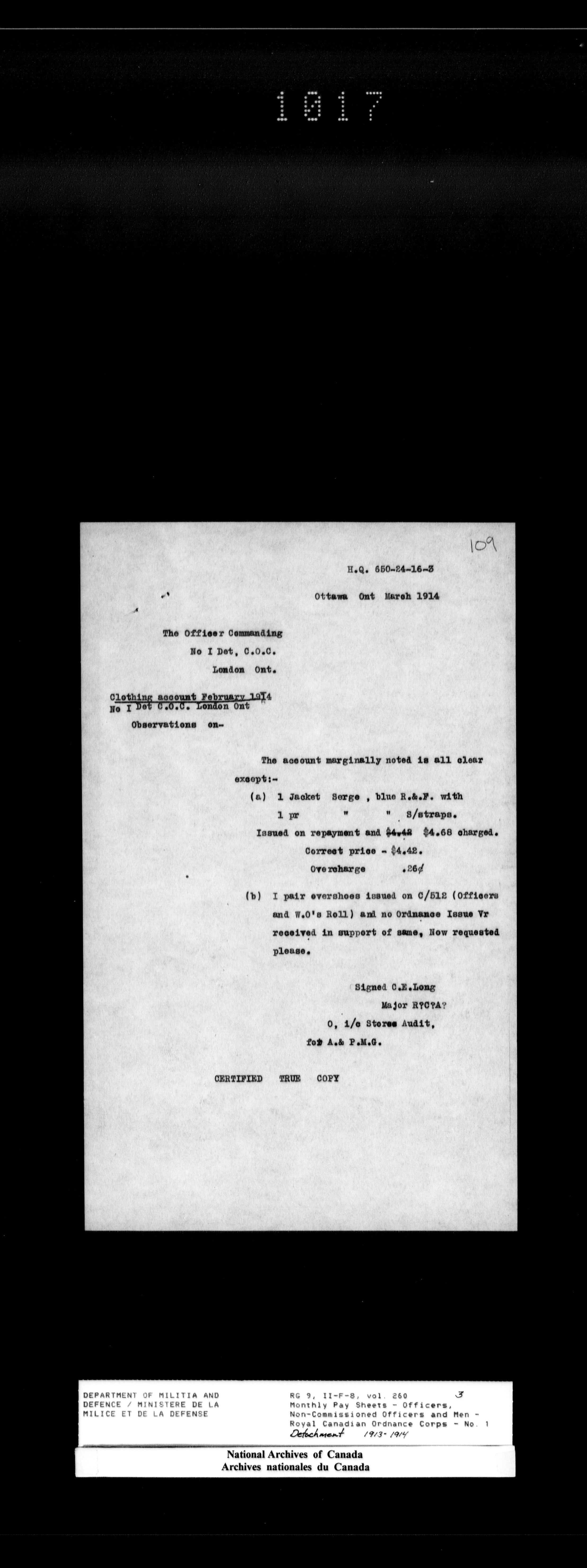 Nominal rolls and paylists for the Permanent Force (1871-1915) - 18427