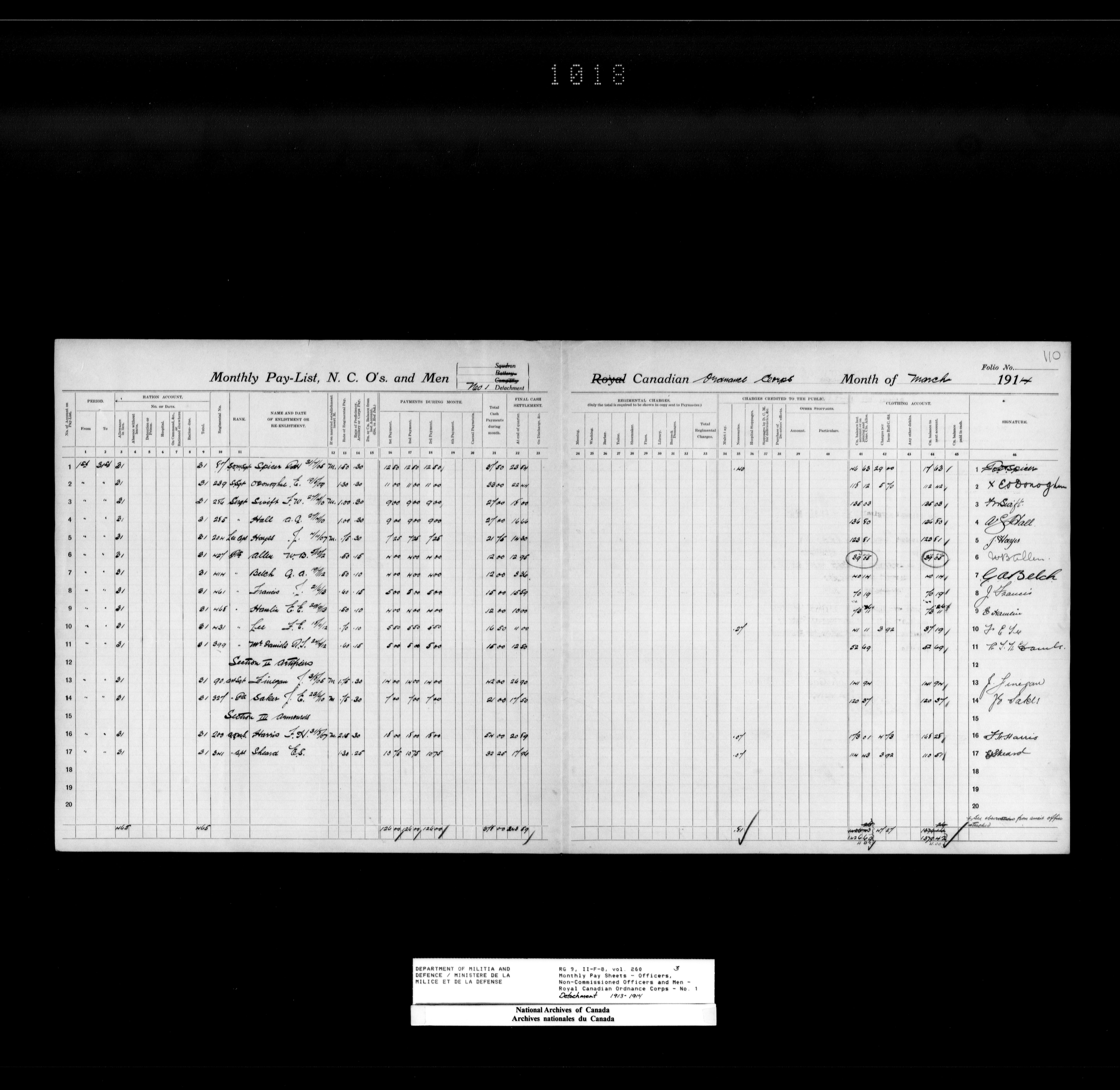 Nominal rolls and paylists for the Permanent Force (1871-1915) - 18427