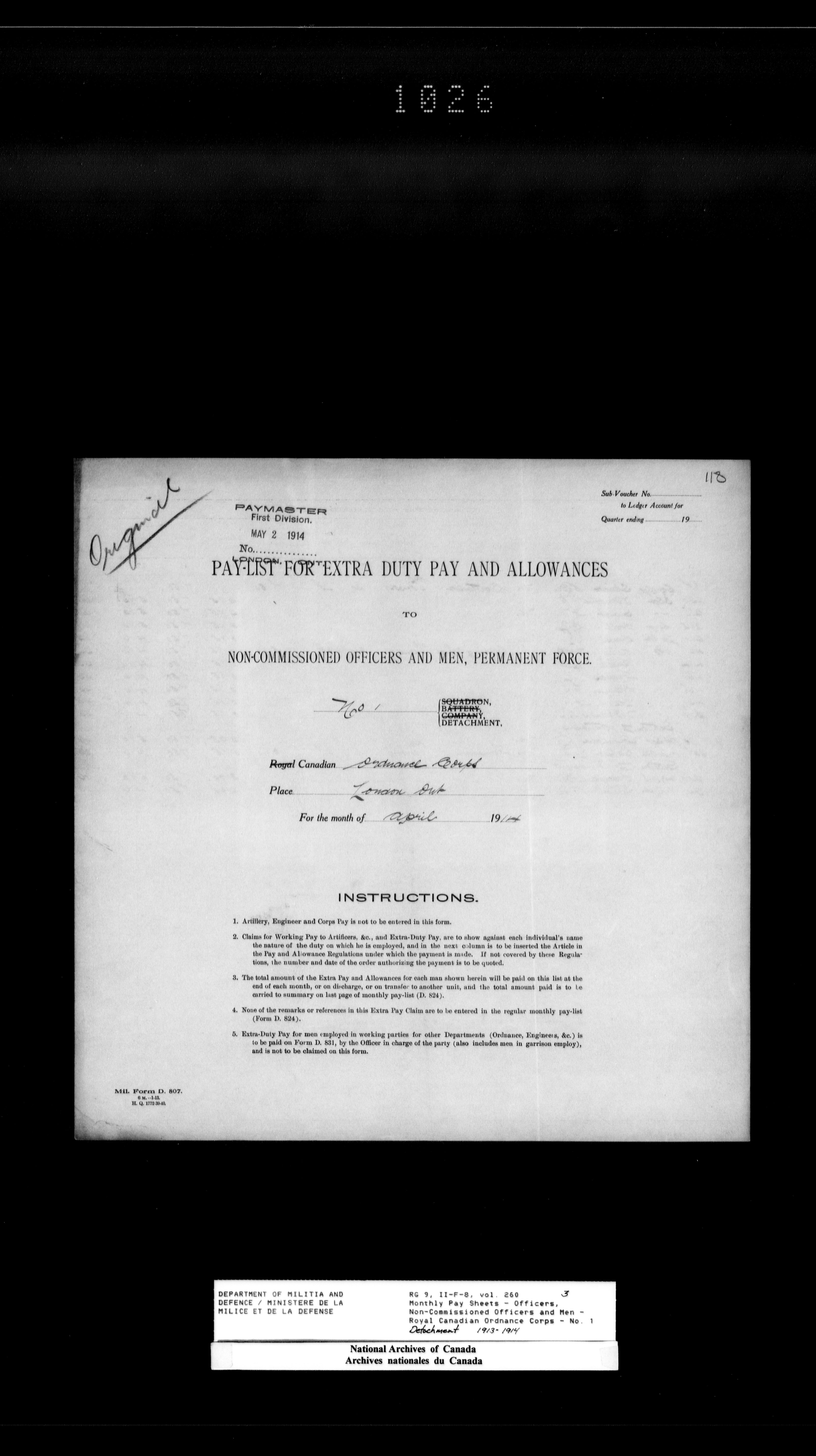 Nominal rolls and paylists for the Permanent Force (1871-1915) - 18427