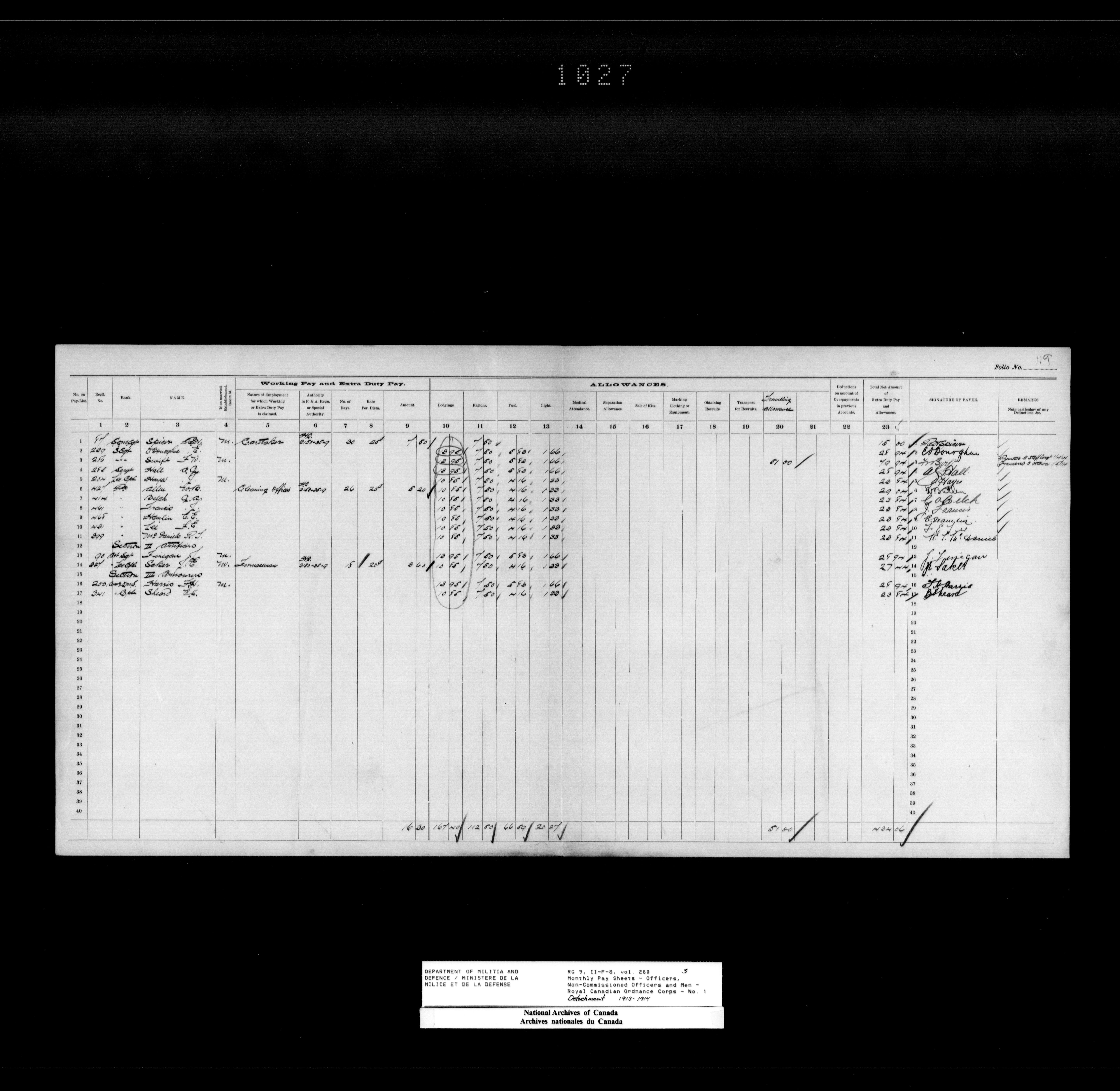 Nominal rolls and paylists for the Permanent Force (1871-1915) - 18427