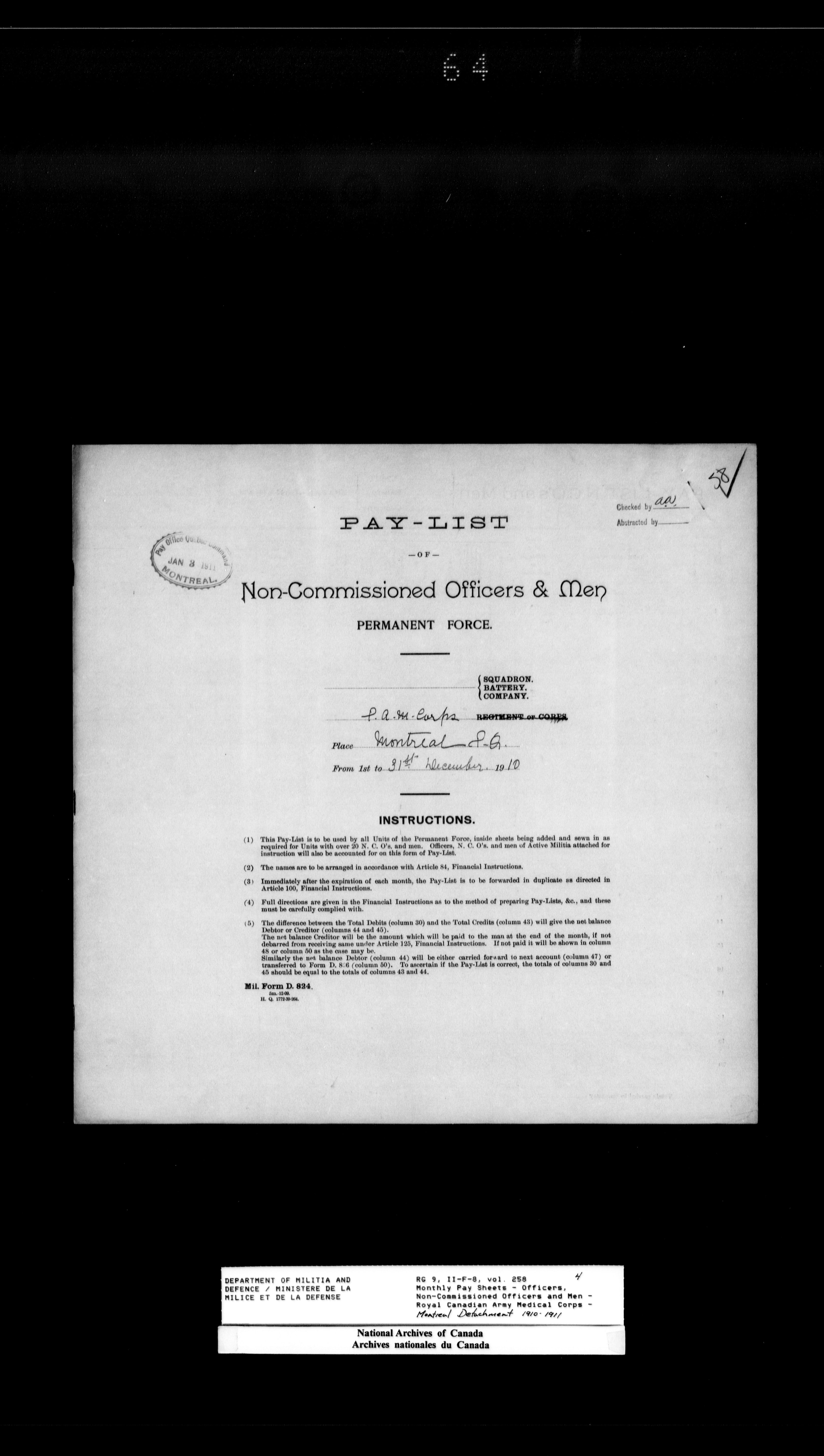 Nominal rolls and paylists for the Permanent Force (1871-1915) - 18427