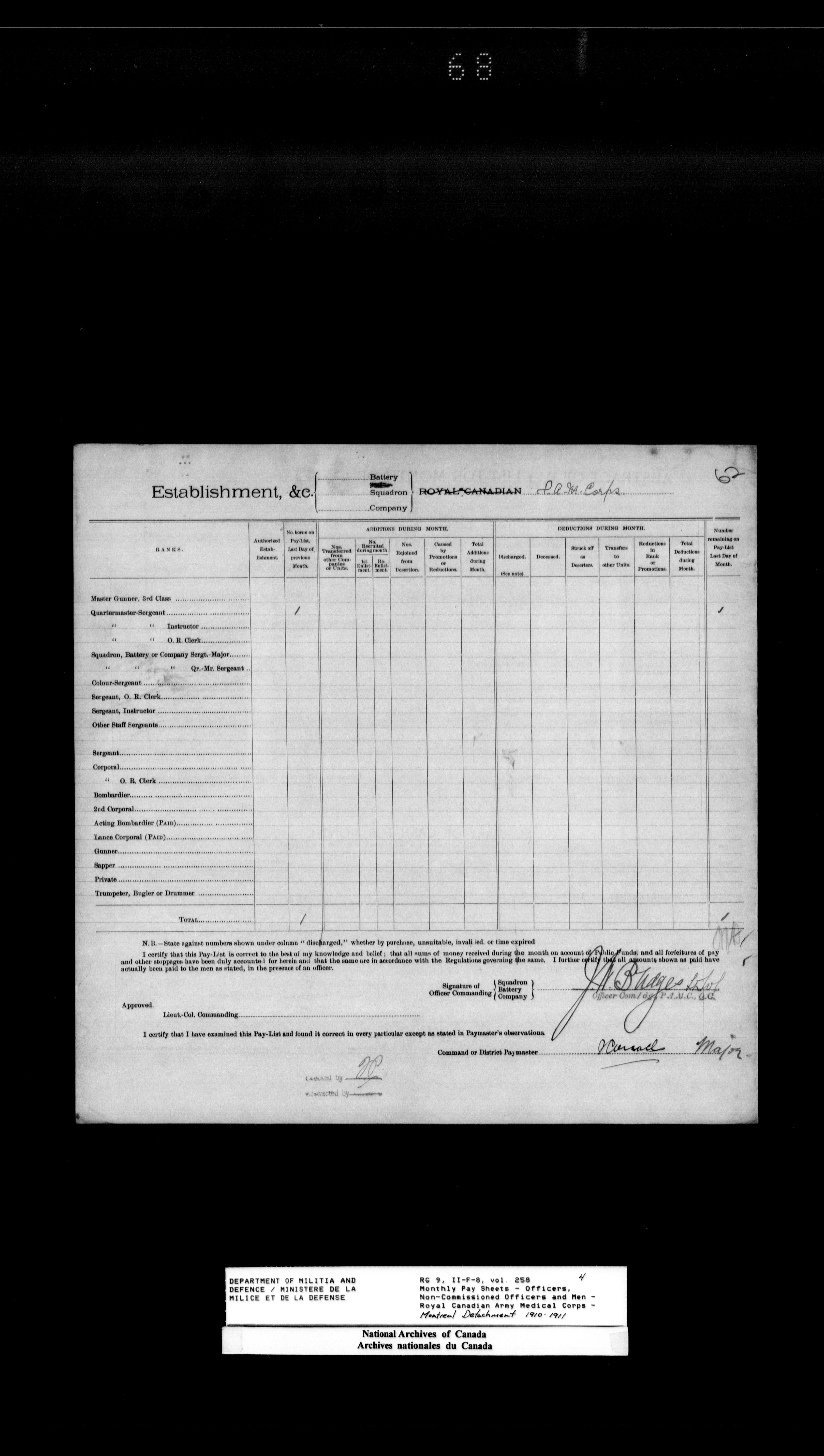 Nominal rolls and paylists for the Permanent Force (1871-1915) - 18427