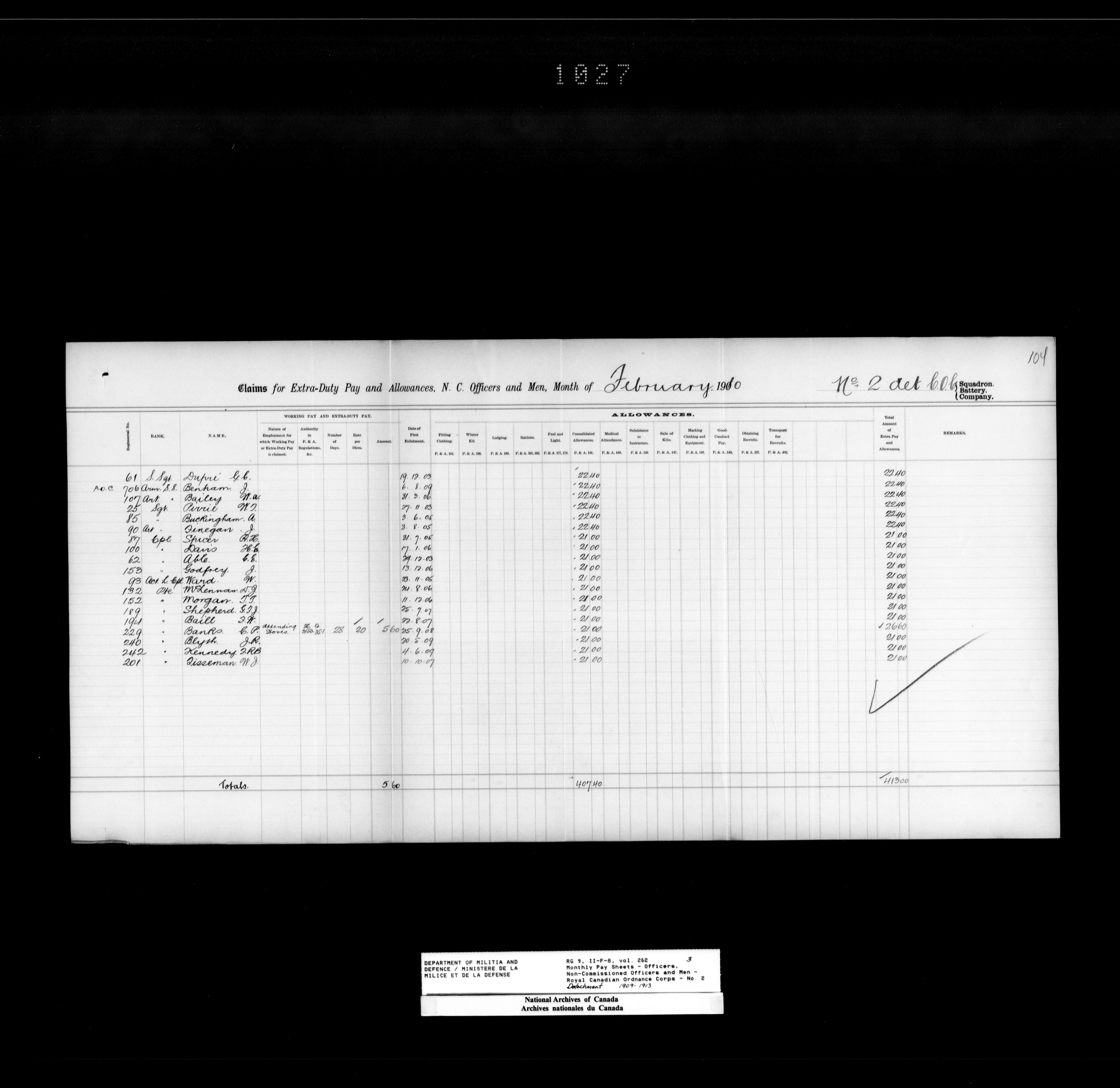 Nominal rolls and paylists for the Permanent Force (1871-1915) - 18428