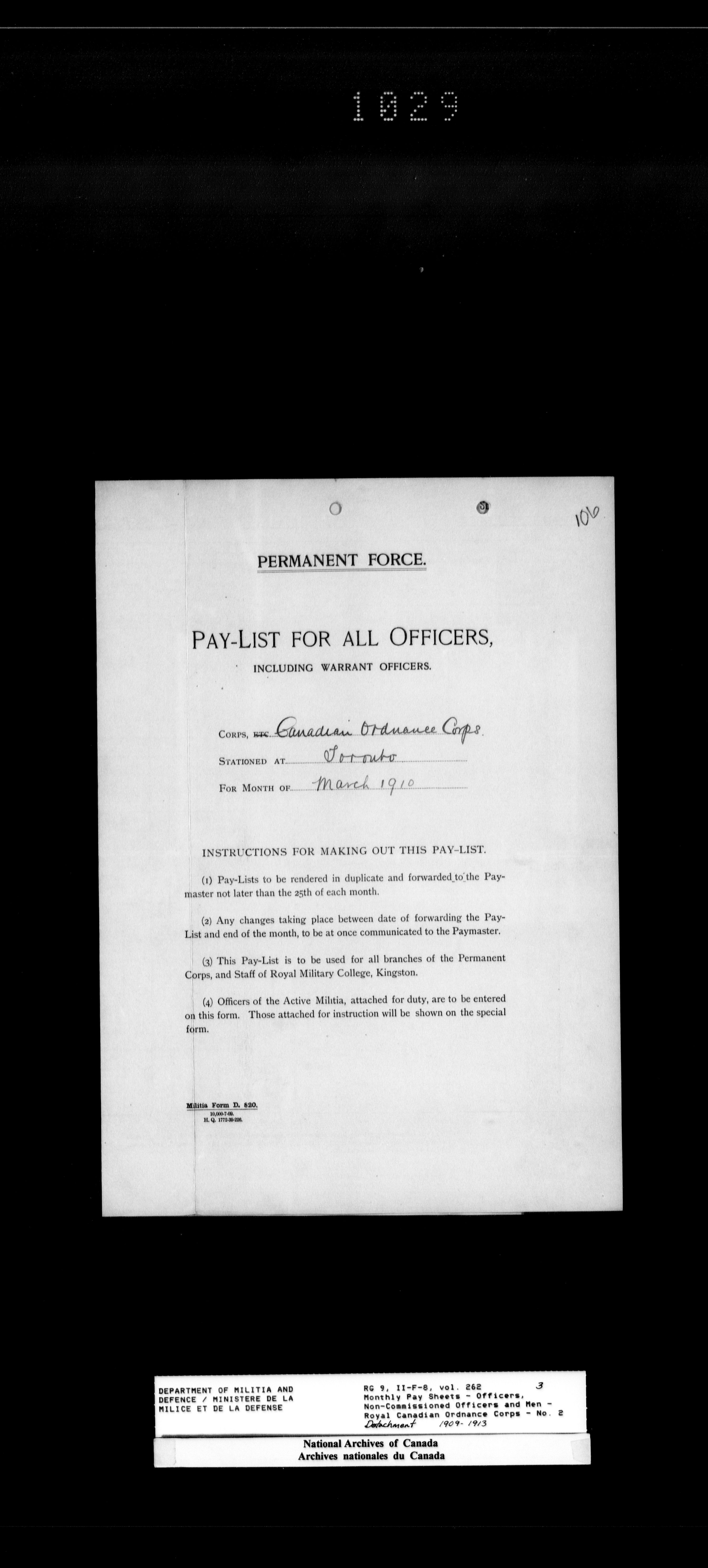 Nominal rolls and paylists for the Permanent Force (1871-1915) - 18428