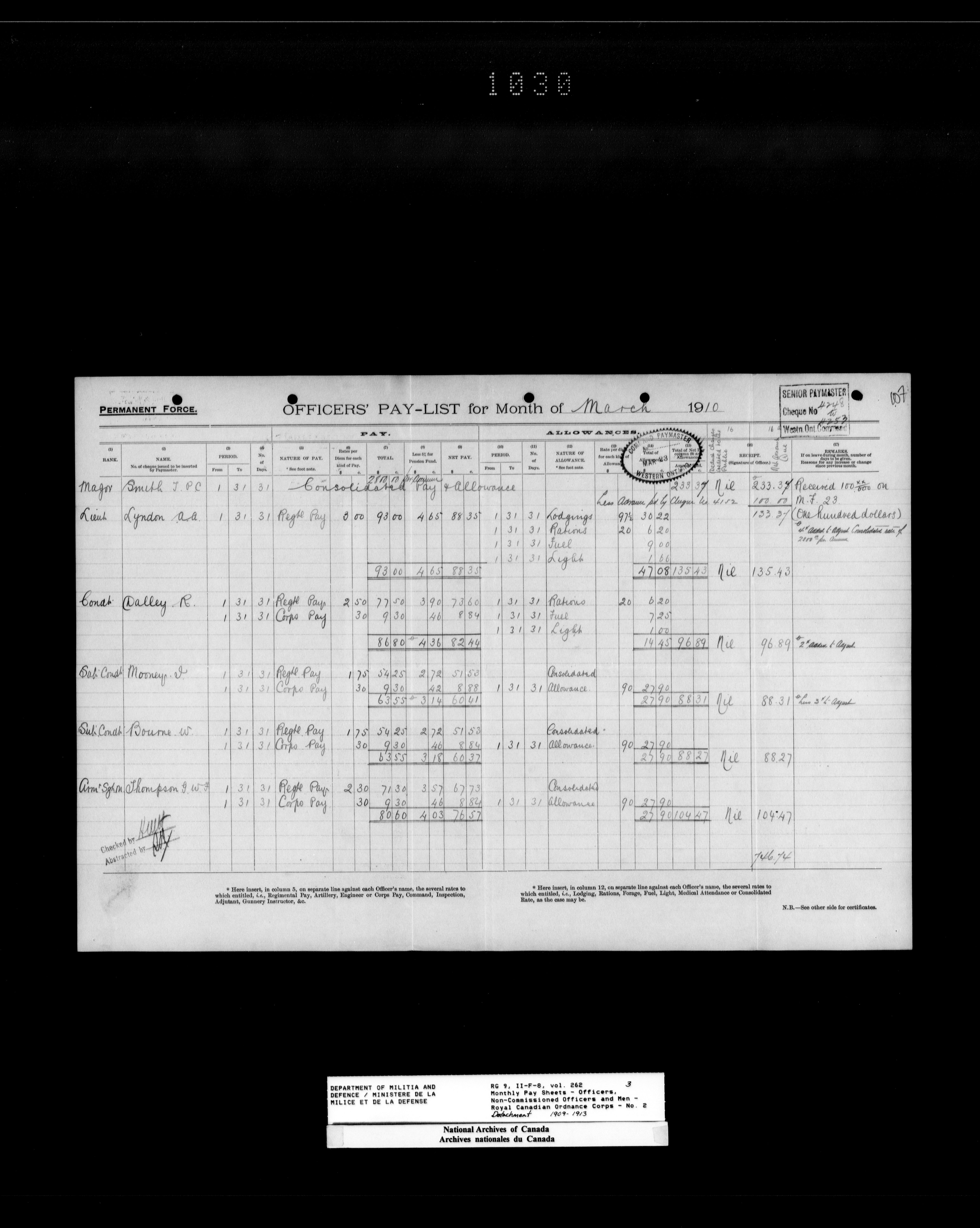 Nominal rolls and paylists for the Permanent Force (1871-1915) - 18428