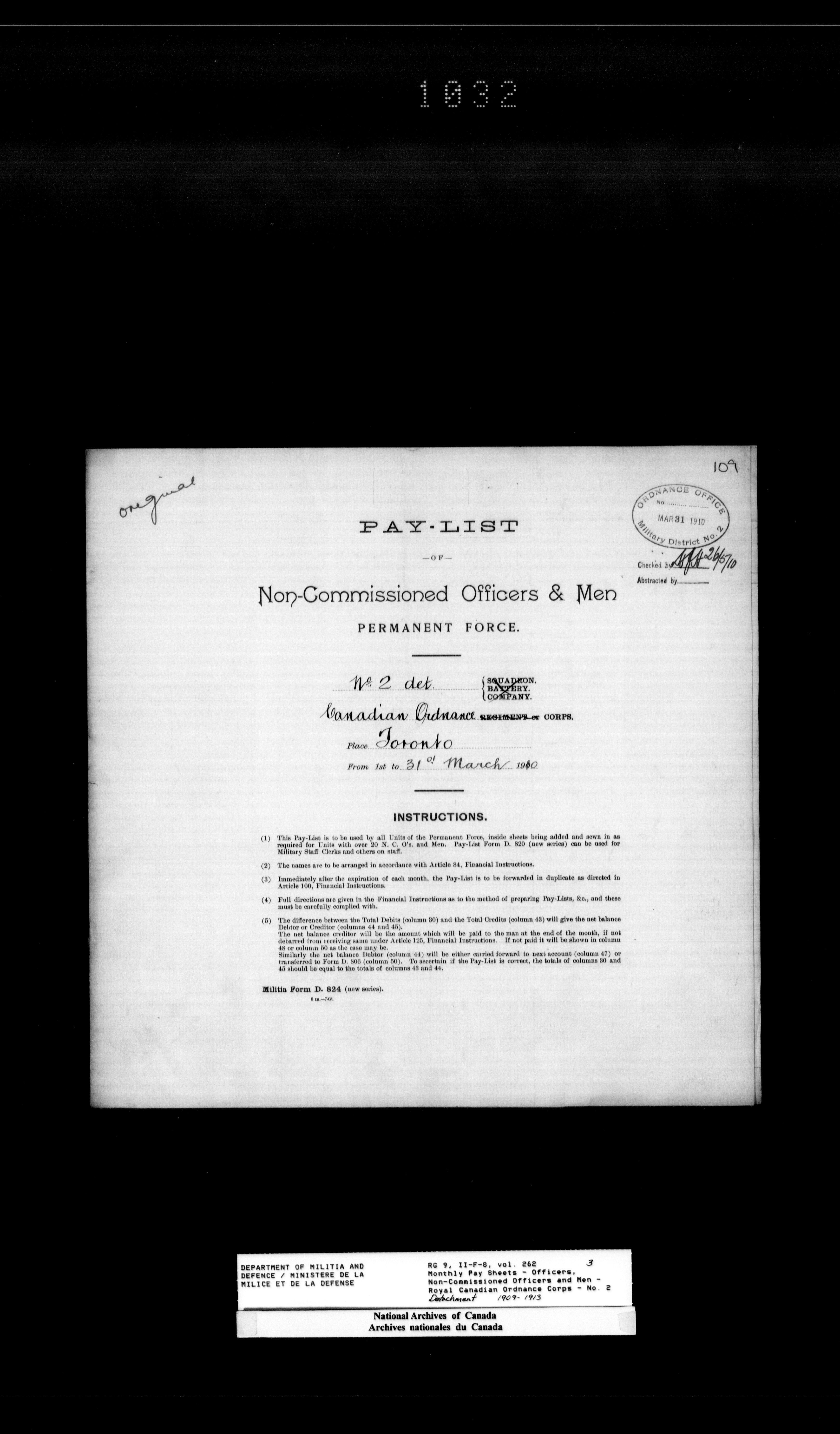 Nominal rolls and paylists for the Permanent Force (1871-1915) - 18428