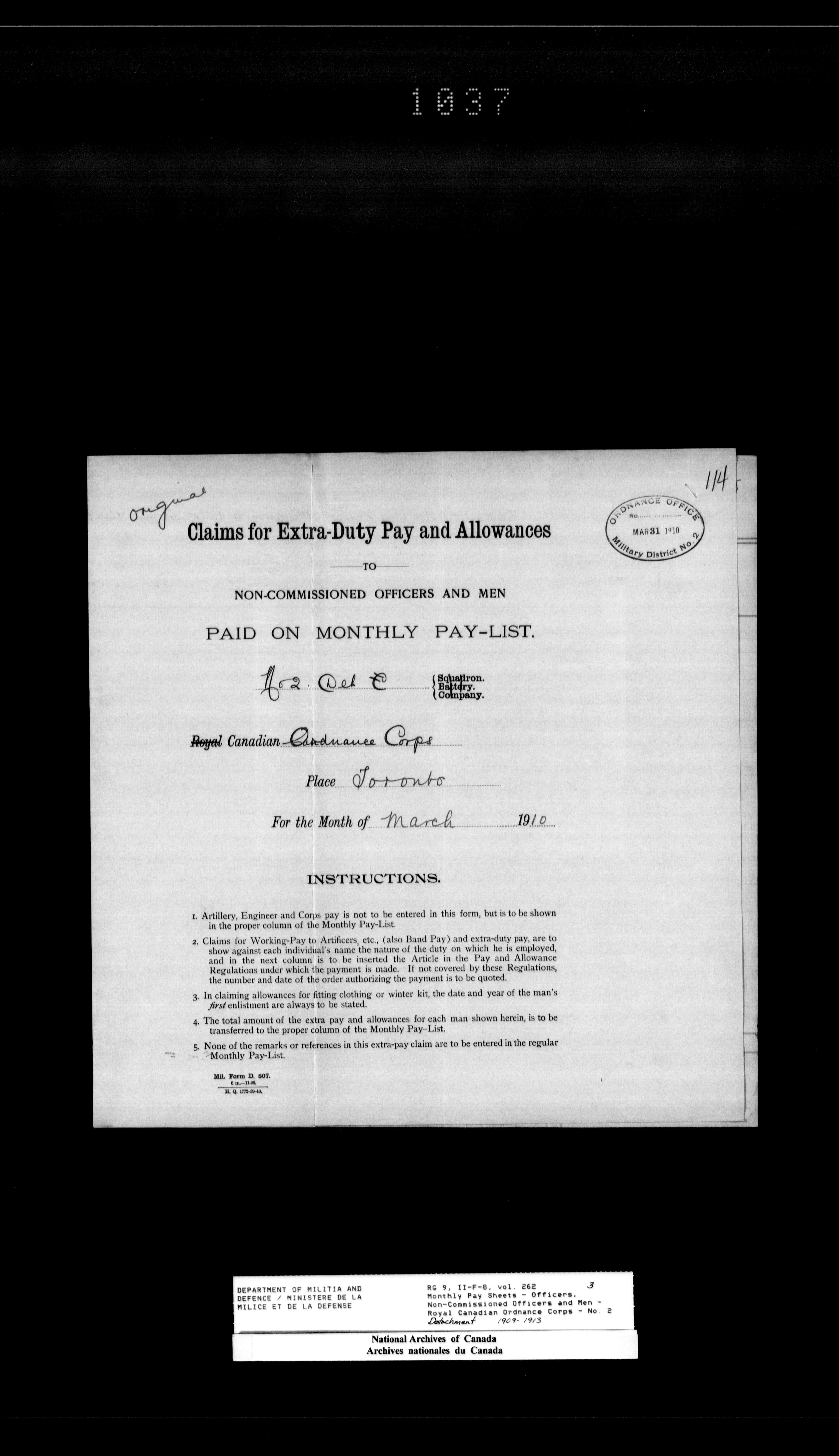 Nominal rolls and paylists for the Permanent Force (1871-1915) - 18428