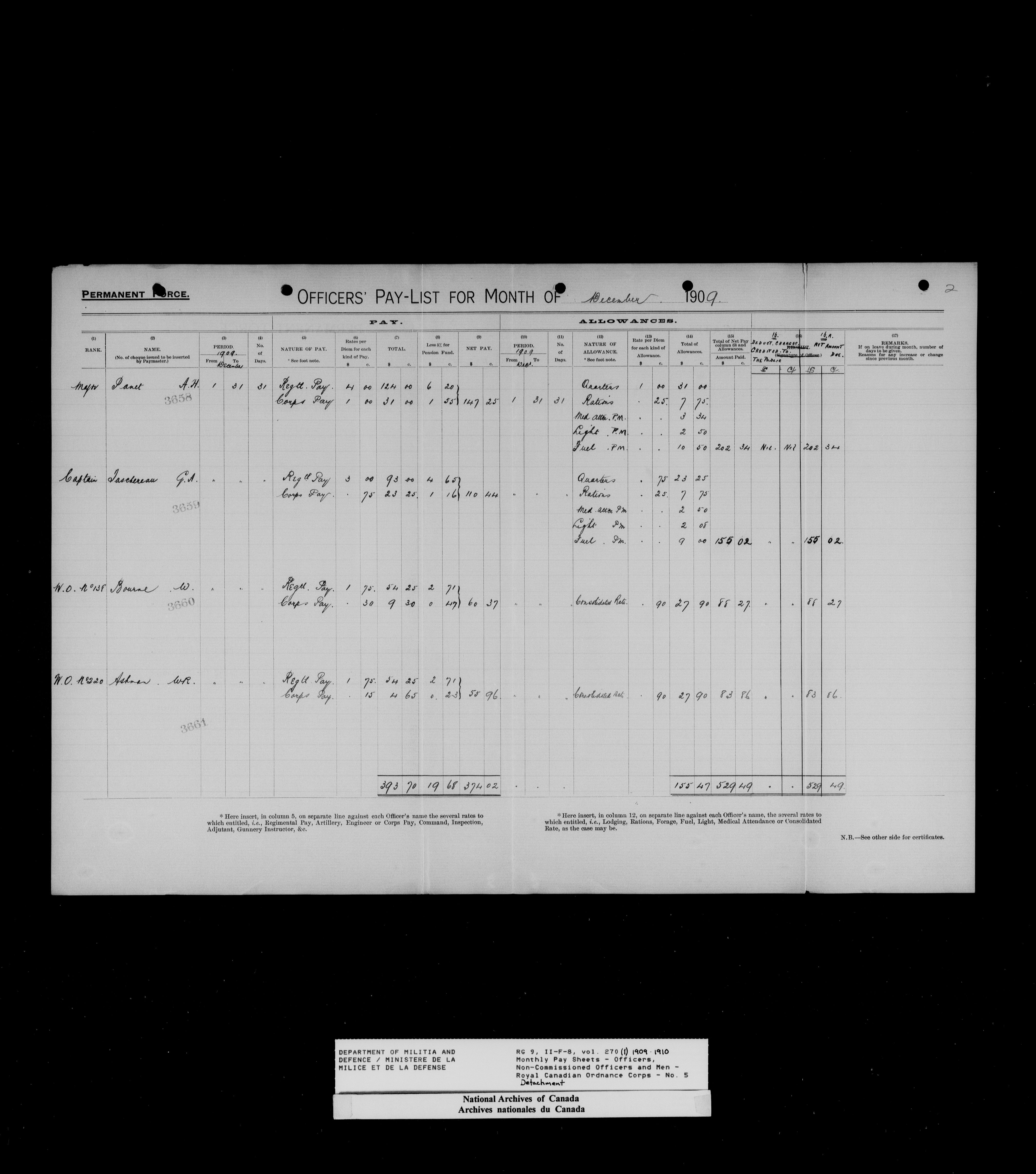 Nominal rolls and paylists for the Permanent Force (1871-1915) - 18431