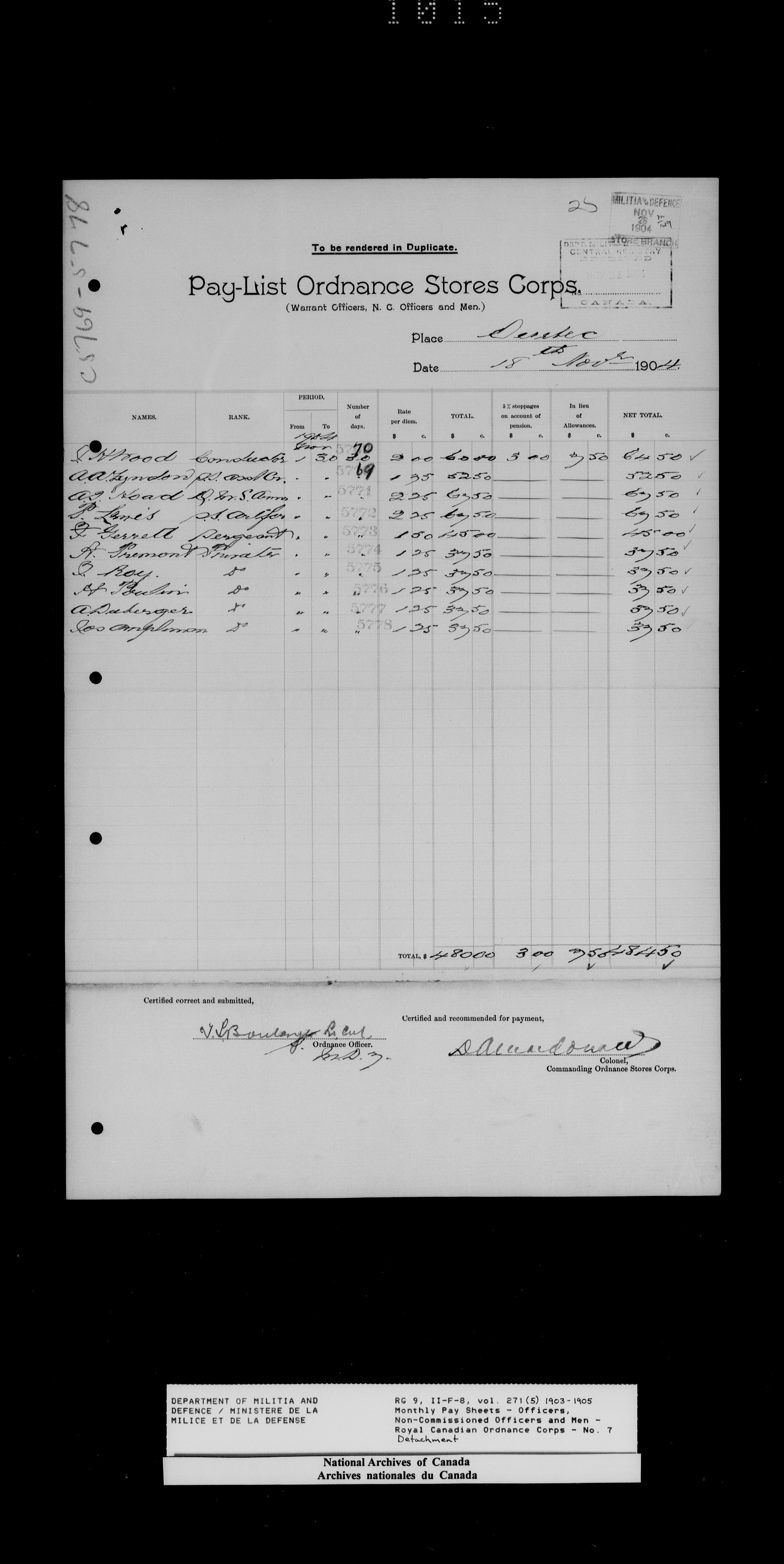 Nominal rolls and paylists for the Permanent Force (1871-1915) - 18432