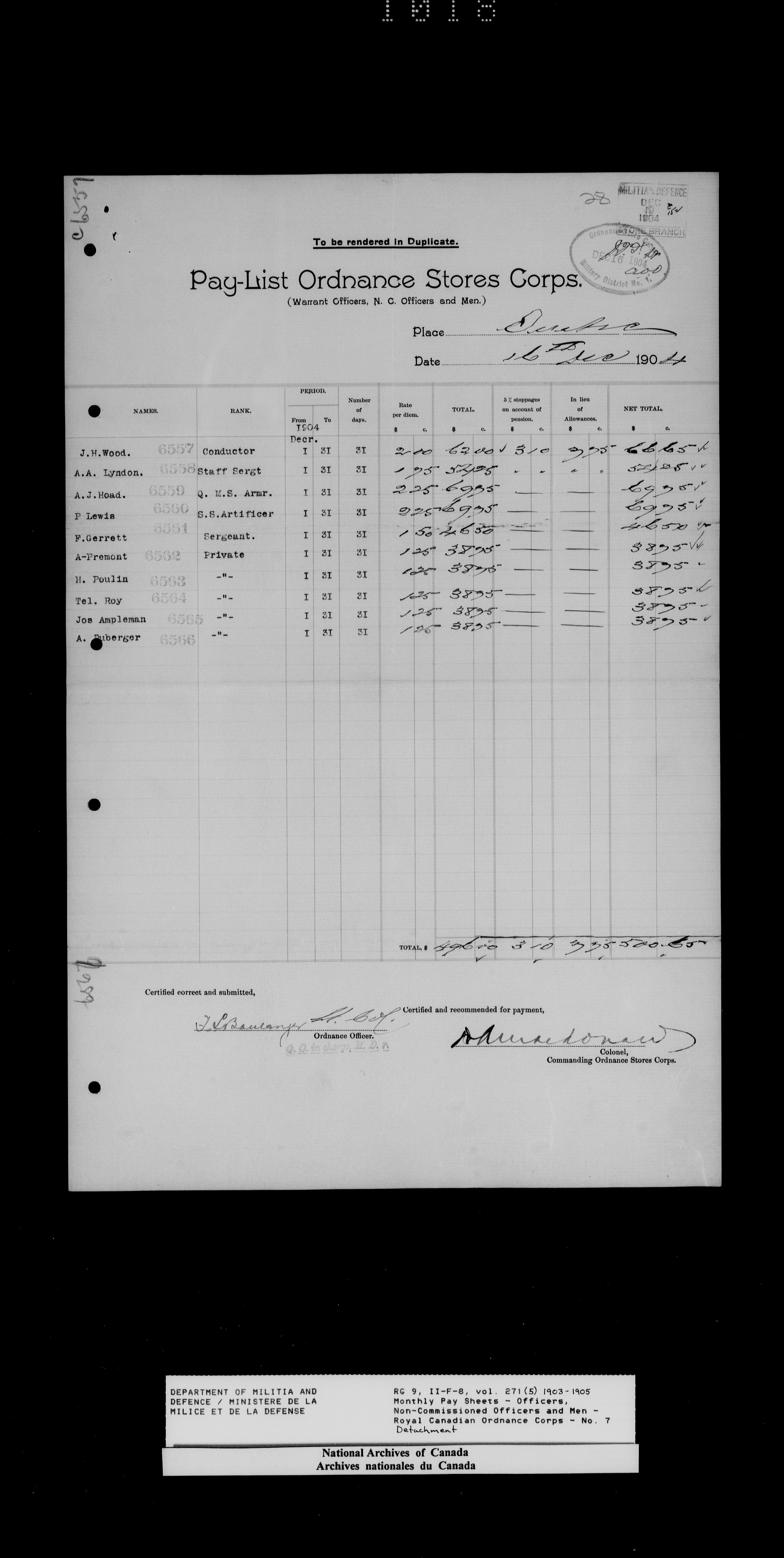 Nominal rolls and paylists for the Permanent Force (1871-1915) - 18432