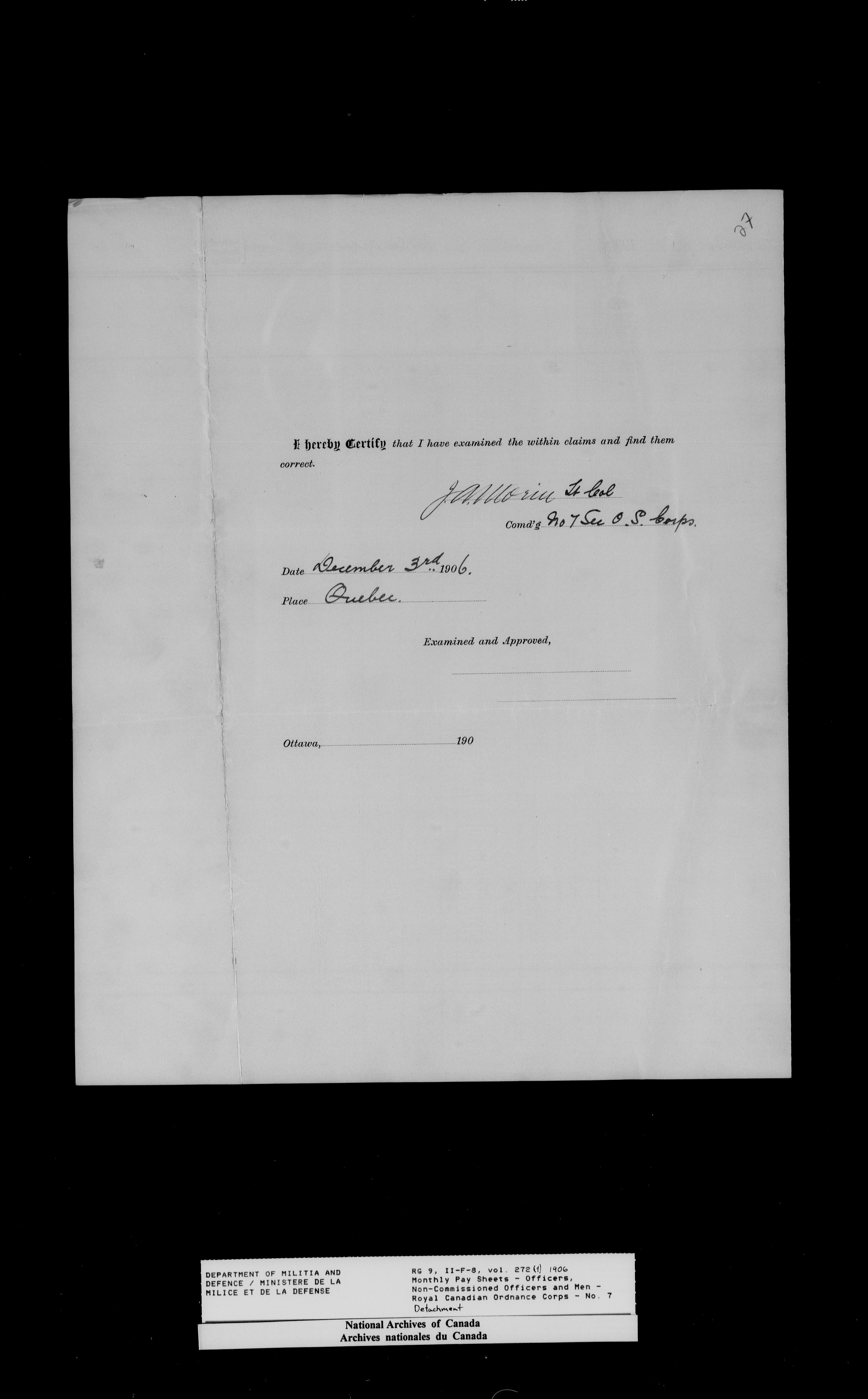 Nominal rolls and paylists for the Permanent Force (1871-1915) - 18433