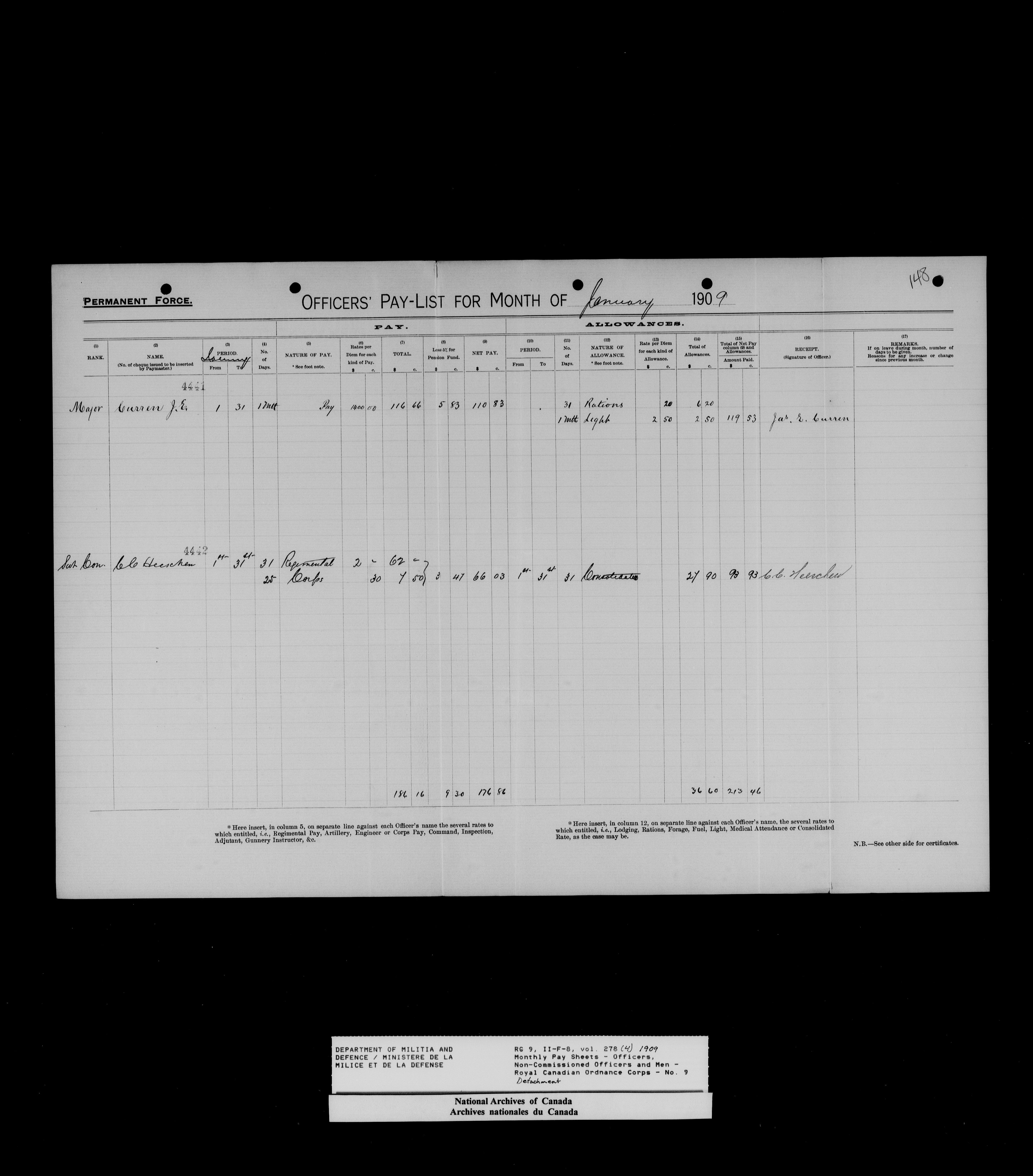 Nominal rolls and paylists for the Permanent Force (1871-1915) - 18435